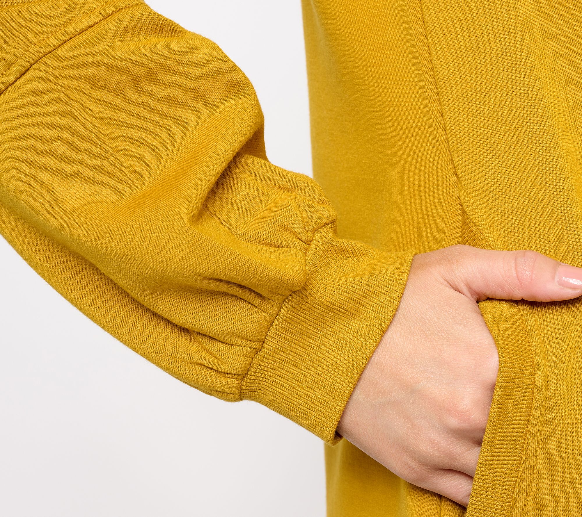 • Features: lantern sleeve with rib cuff, drawstring at hood, side slits, side-seam pockets