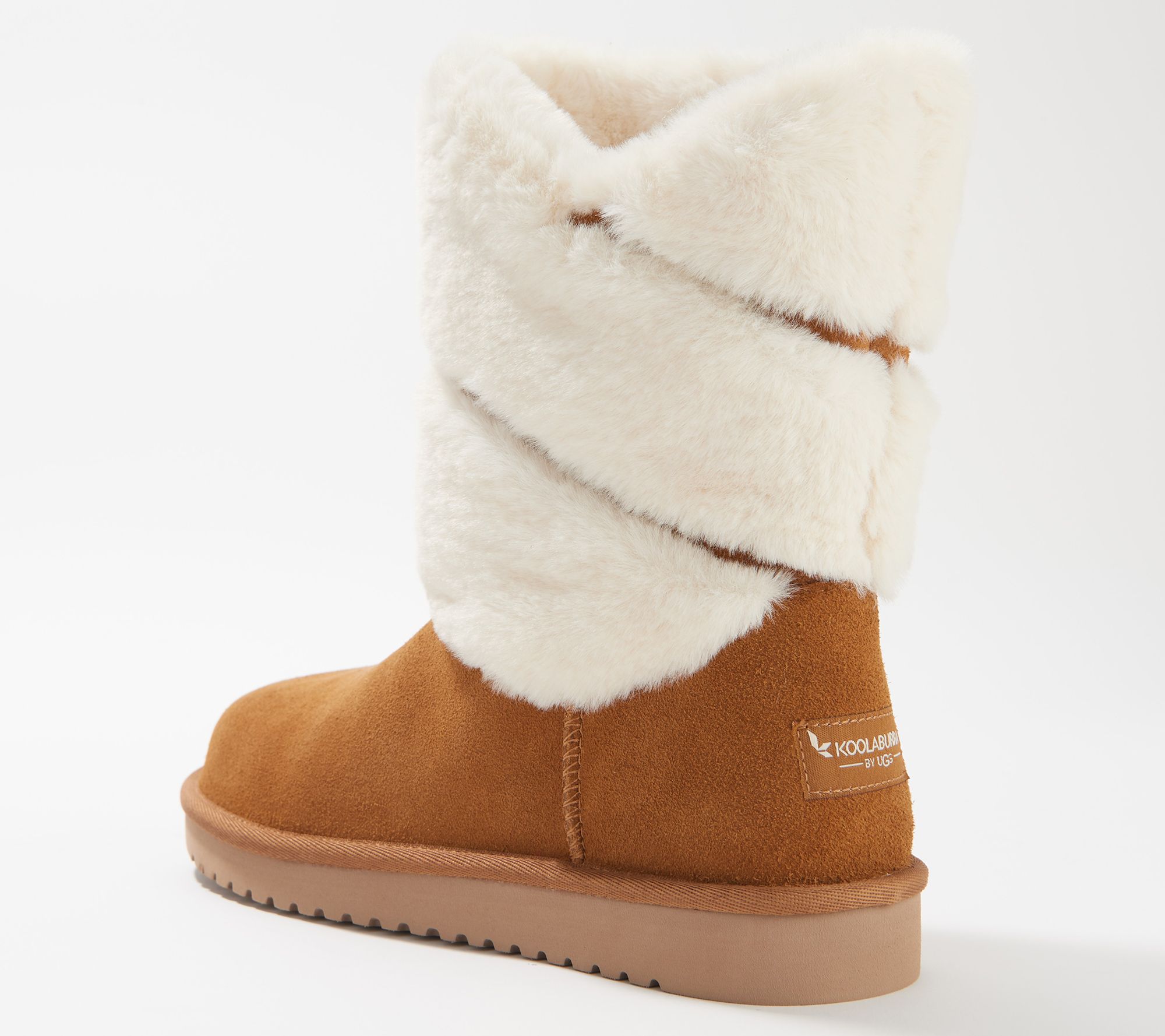 Like a sweater for your feet, these suede boots are soft, warm, and cozy, with a fancy faux-fur foldover detail. From Koolaburra by UGG.