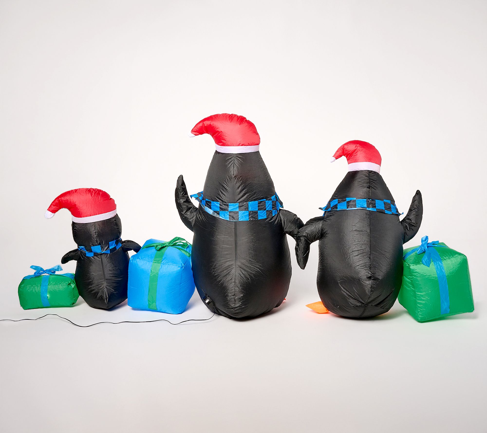 • Includes three inflatable penguins with gifts and four plastic stakes