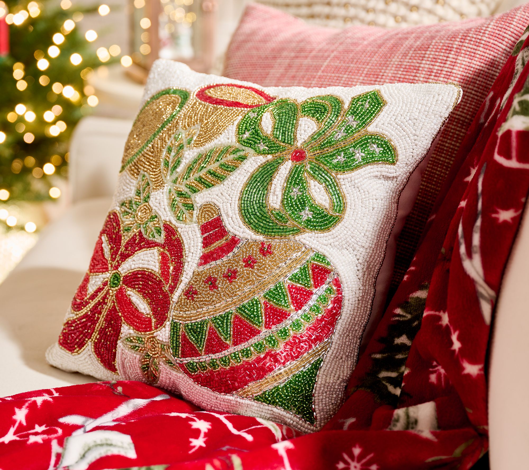 Cozy up this season with a softer way to accent your home. This beaded pillow brings the holiday spirit to your decor -- just toss it on a chair, sofa, or window seat for all the festive feels. From Kringle Express.
