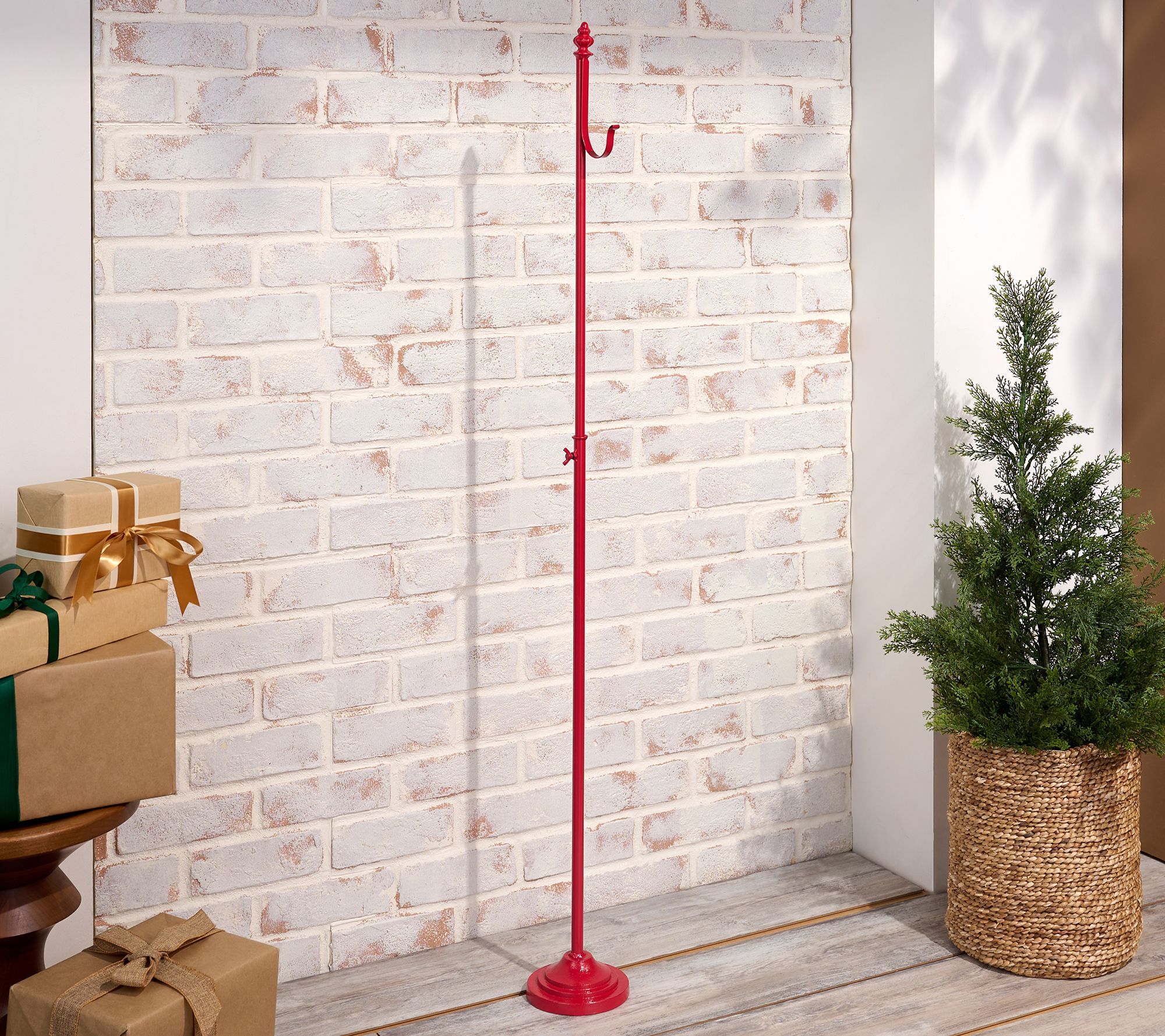 Now there's always the perfect place to hang your holiday wreath -- anywhere you want it! This standing metal wreath hanger makes seasonal decorating a cinch. No more affixing your decor to a door or wall, simply set it on the stand and move it wherever you want a merry display. From Kringle Express.