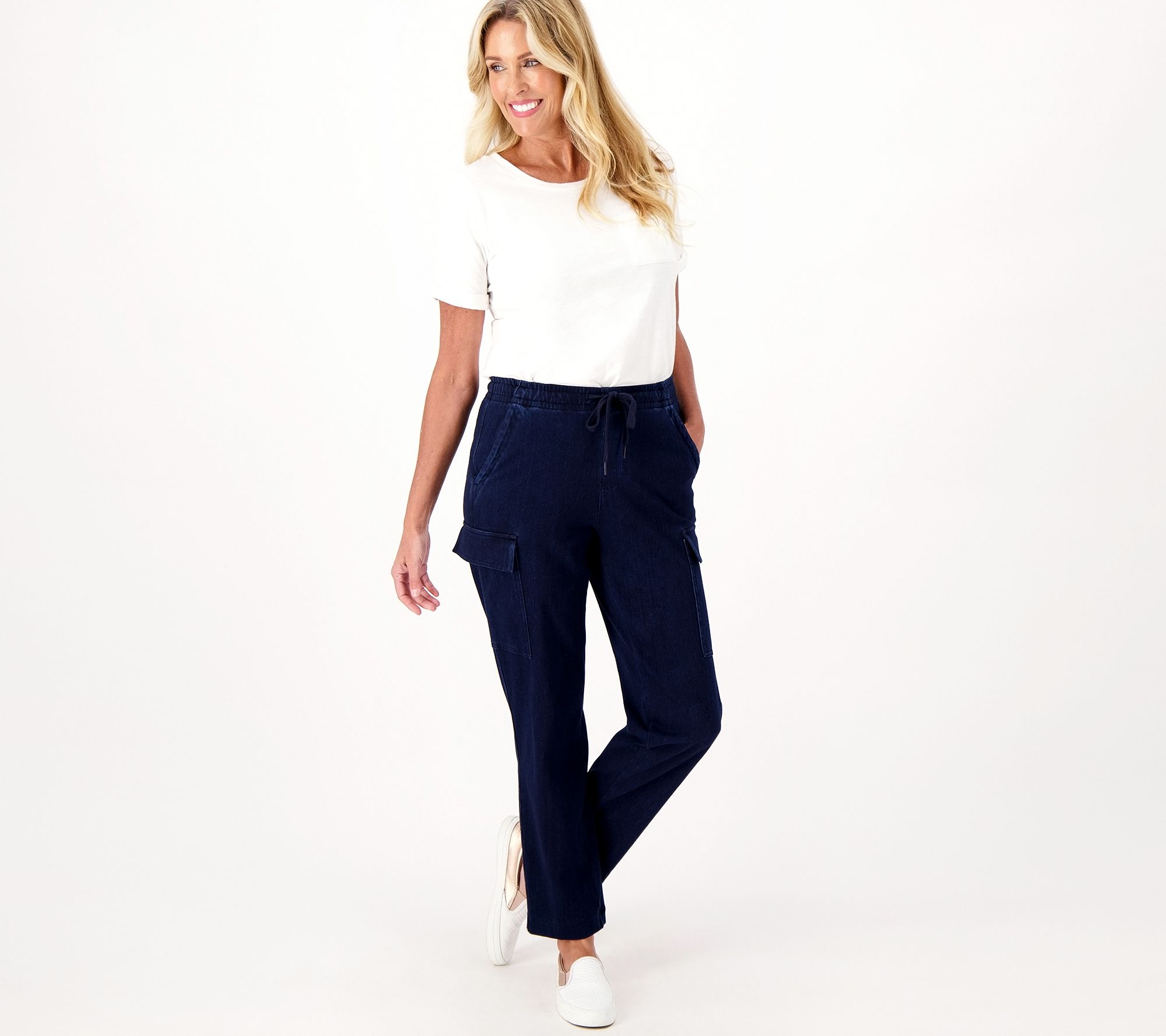 • Features: pull-on style, drawstring waist, full-length style, side cargo pockets