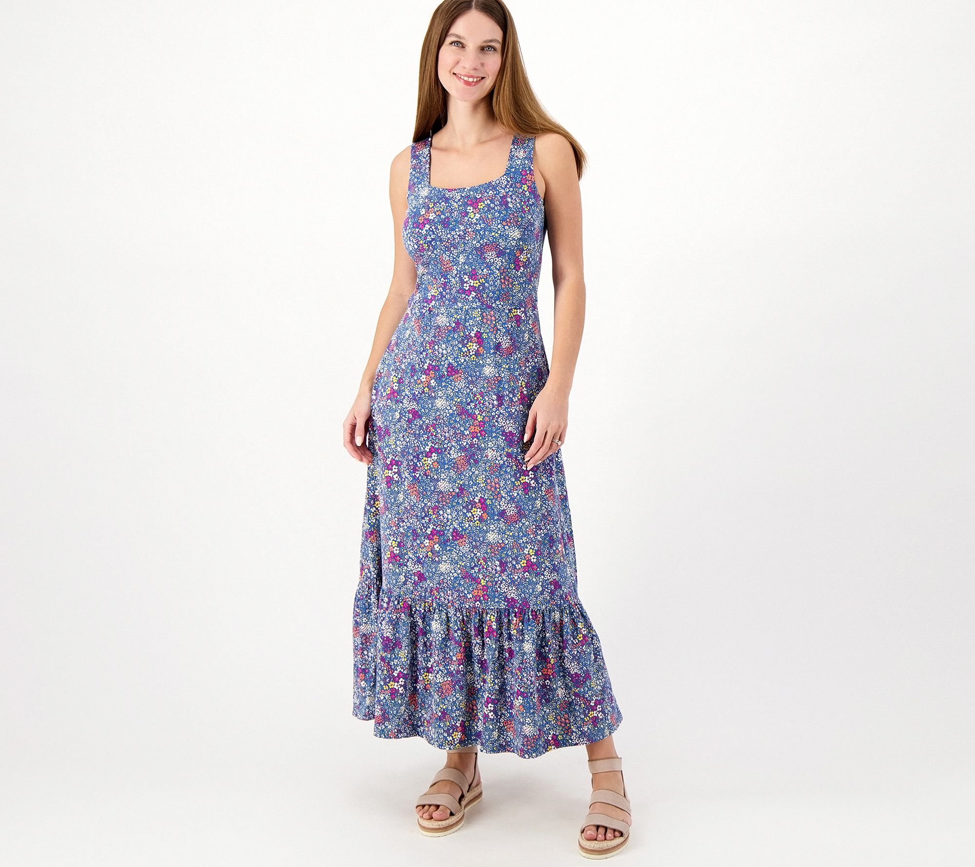 "As Is" Lands' End Petite Square Neck Tiered Maxi Dress