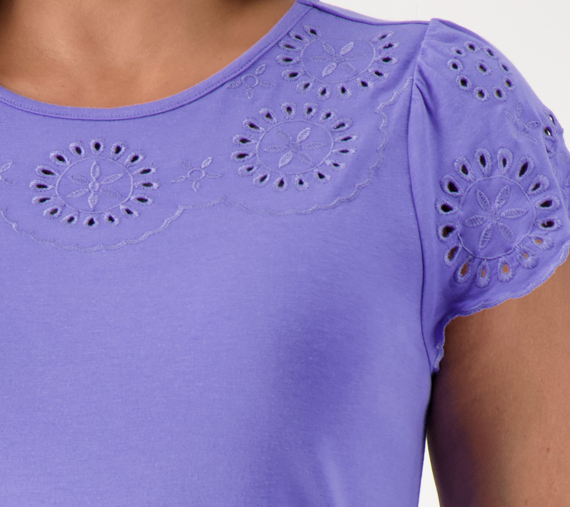 "As Is" Laurie Felt Cotton Bamboo Eyelet Flutter Sleeve Tee