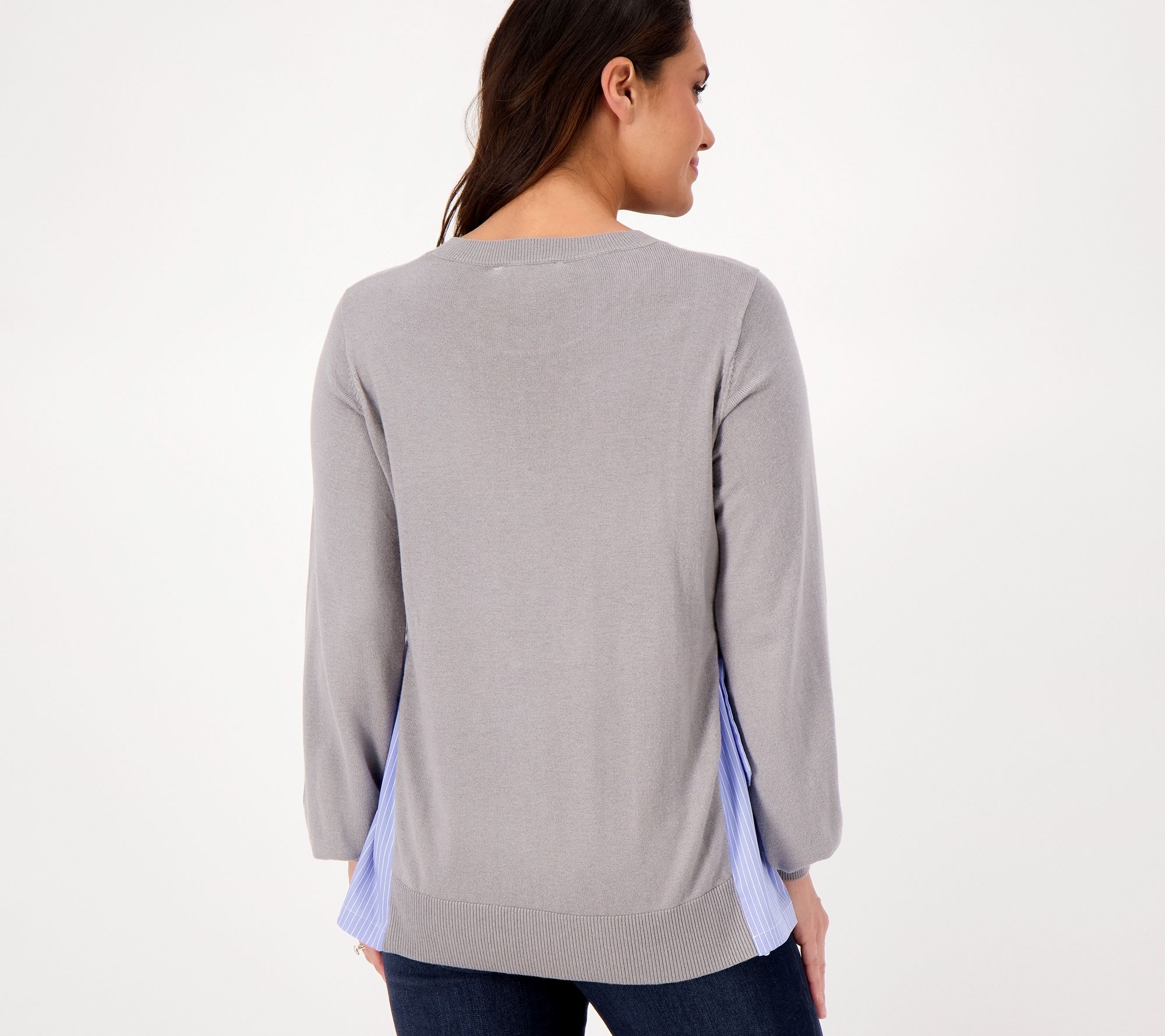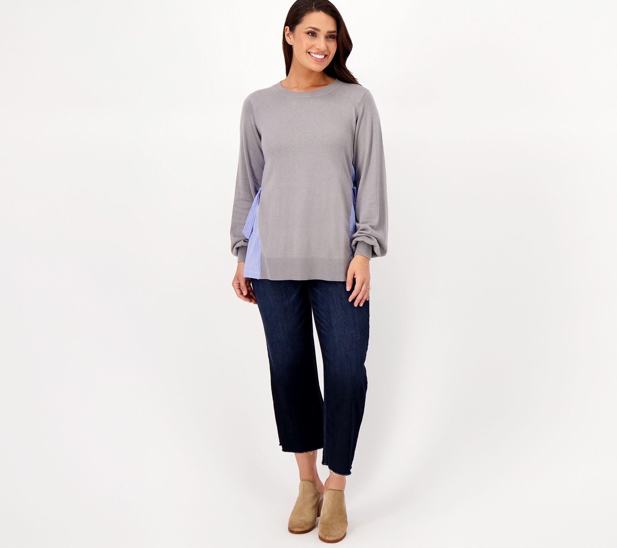 "As Is" Laurie Felt Mixed Media Sweater with Side Pleat & Tie Detail
