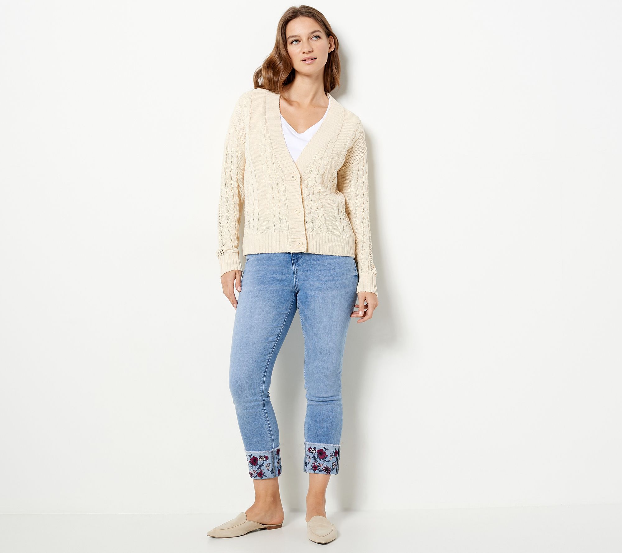 "As Is" Laurie Felt Petite Daisy Denim Crop Easy Skinny Jeans