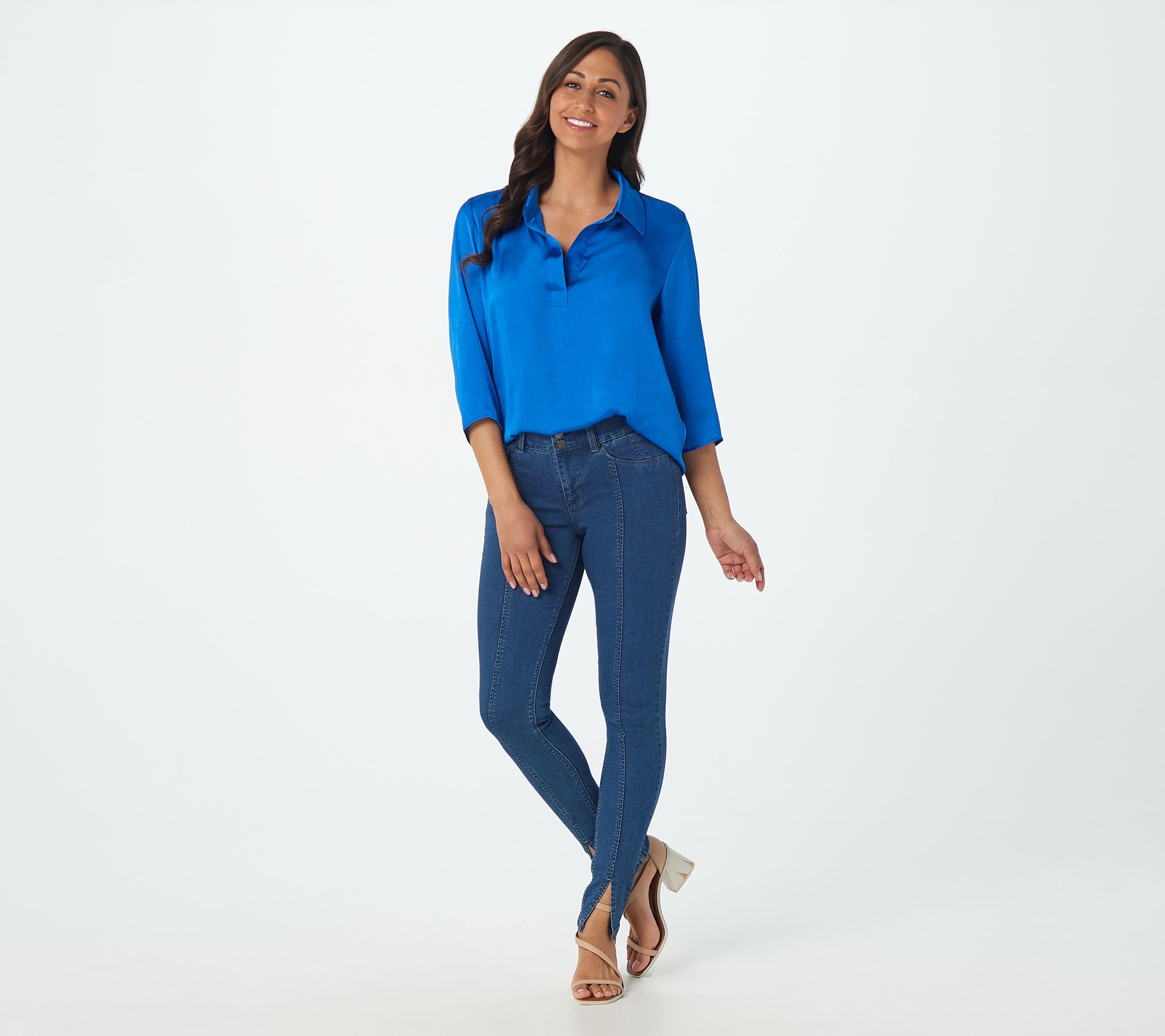 "As Is" Laurie Felt Regular Curve Silky Denim Skinny Jeans w/Slit