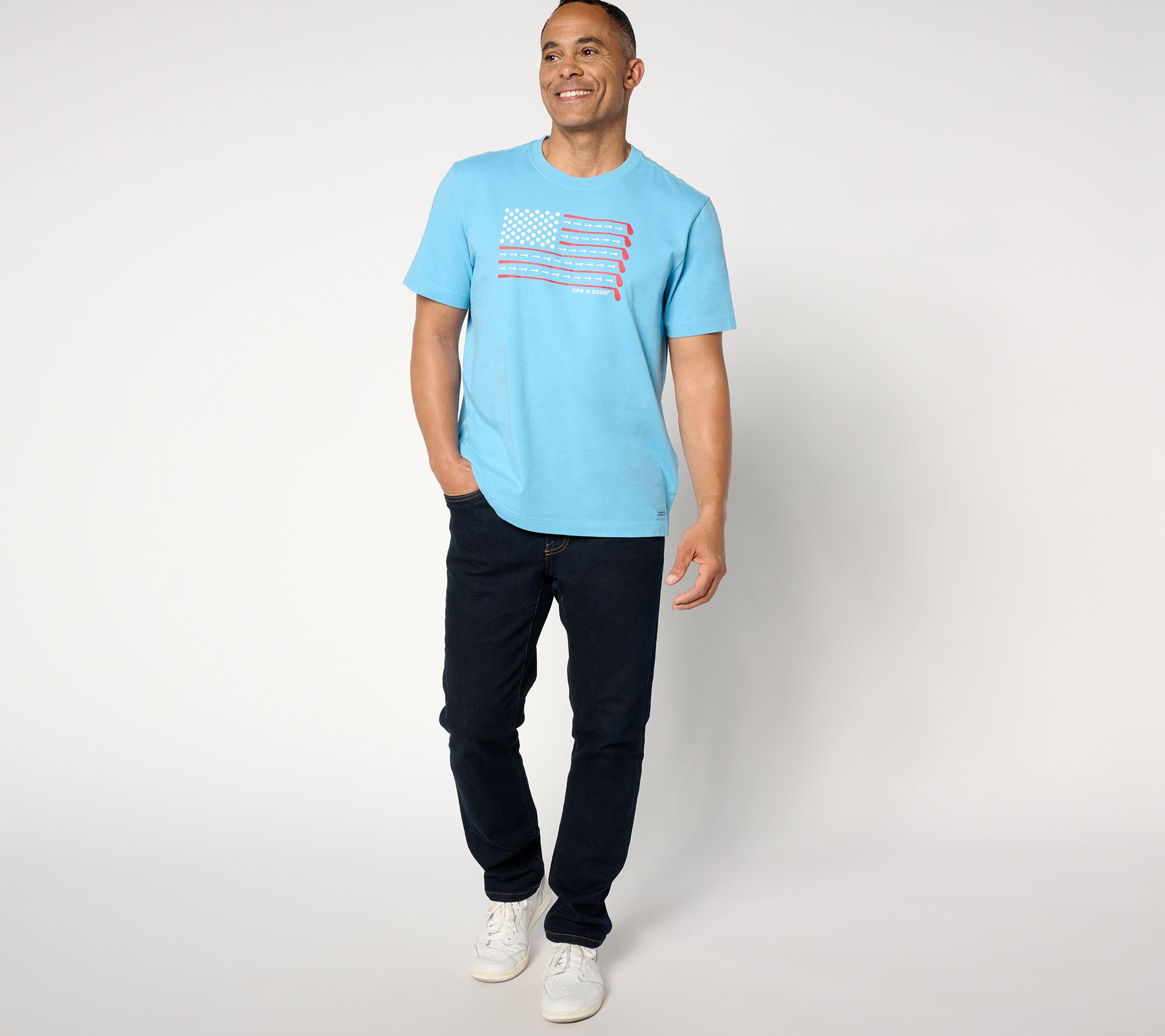 It's tee time! Line up your laid-back looks for a summer of fun starting with this Americana-themed crusher tee. With short sleeves, soft cotton, and a retro-style graphic, this top is ready to be worn on repeat. From Life is Good.
