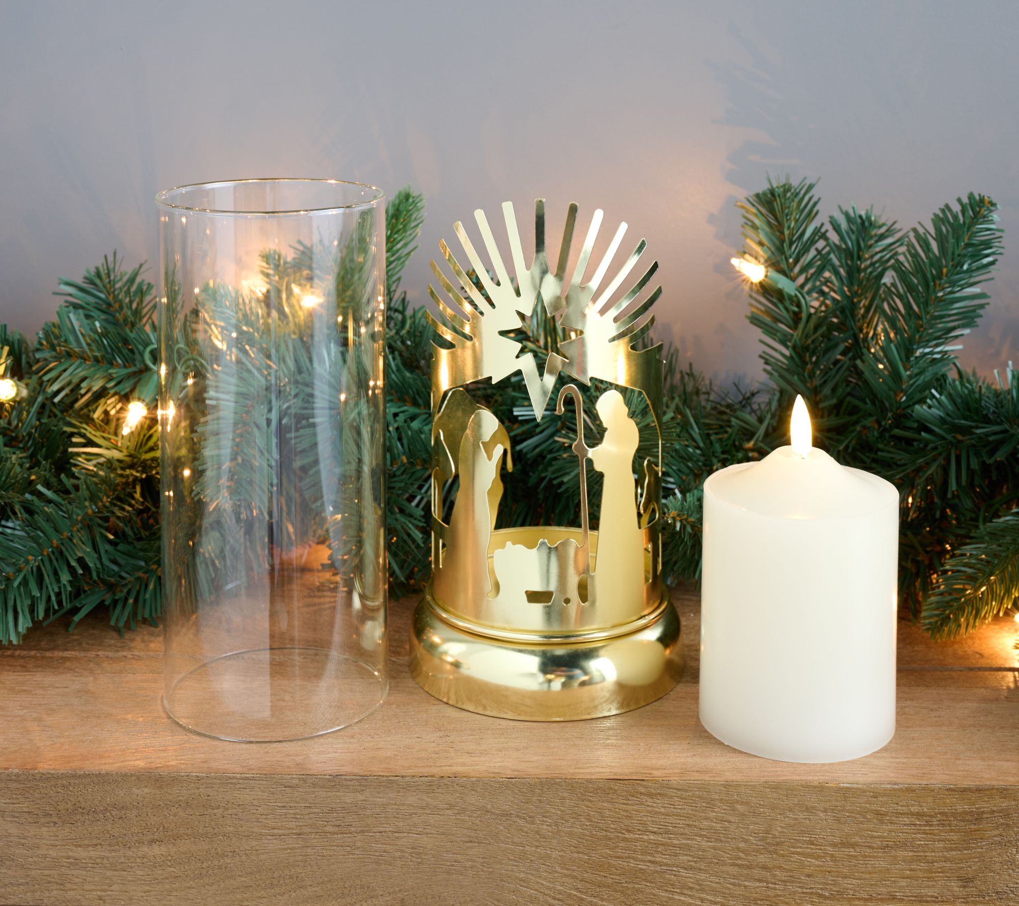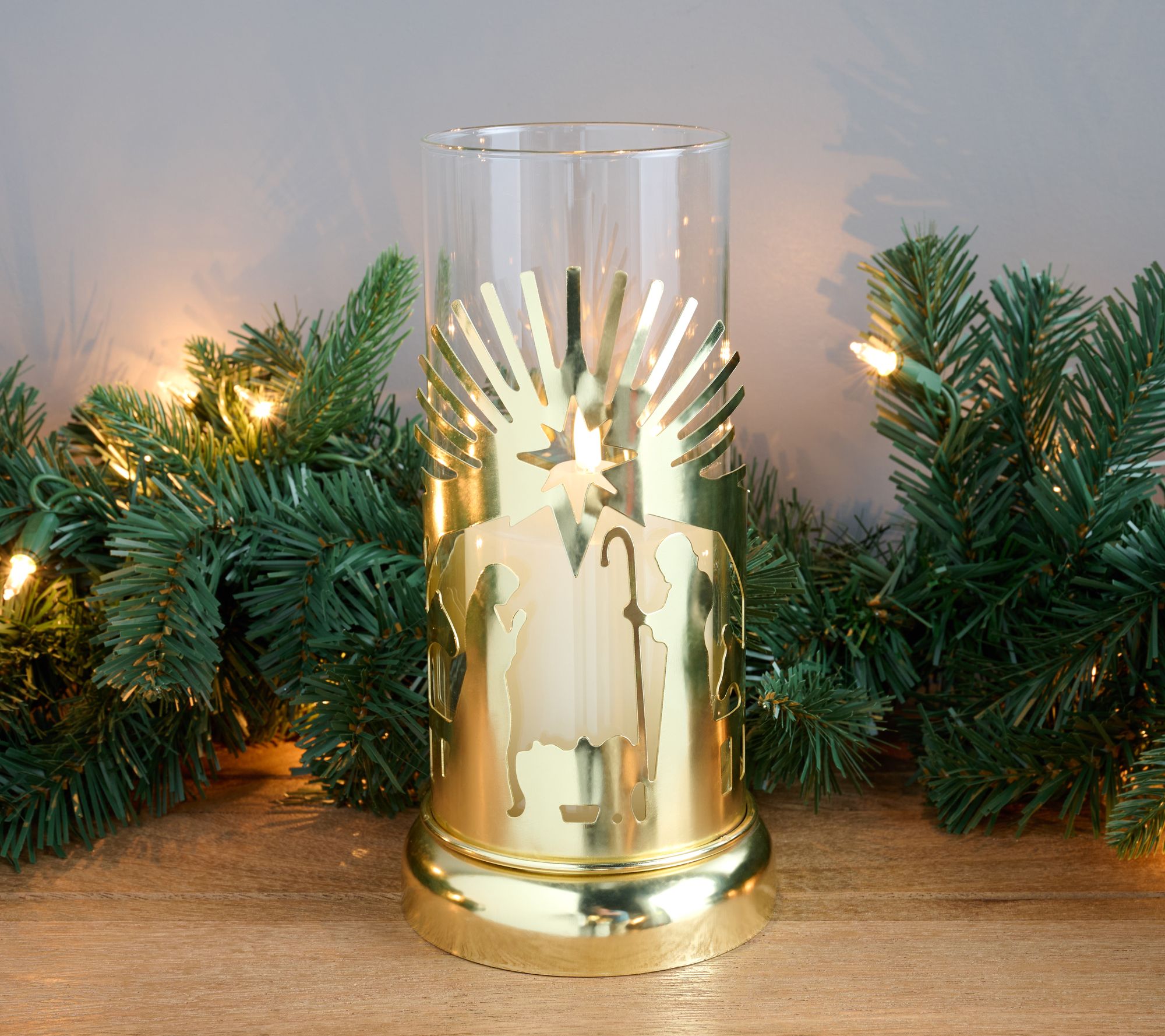 "As Is" Lightscapes 8" Nativity Hurricane with FlamelessCandle
