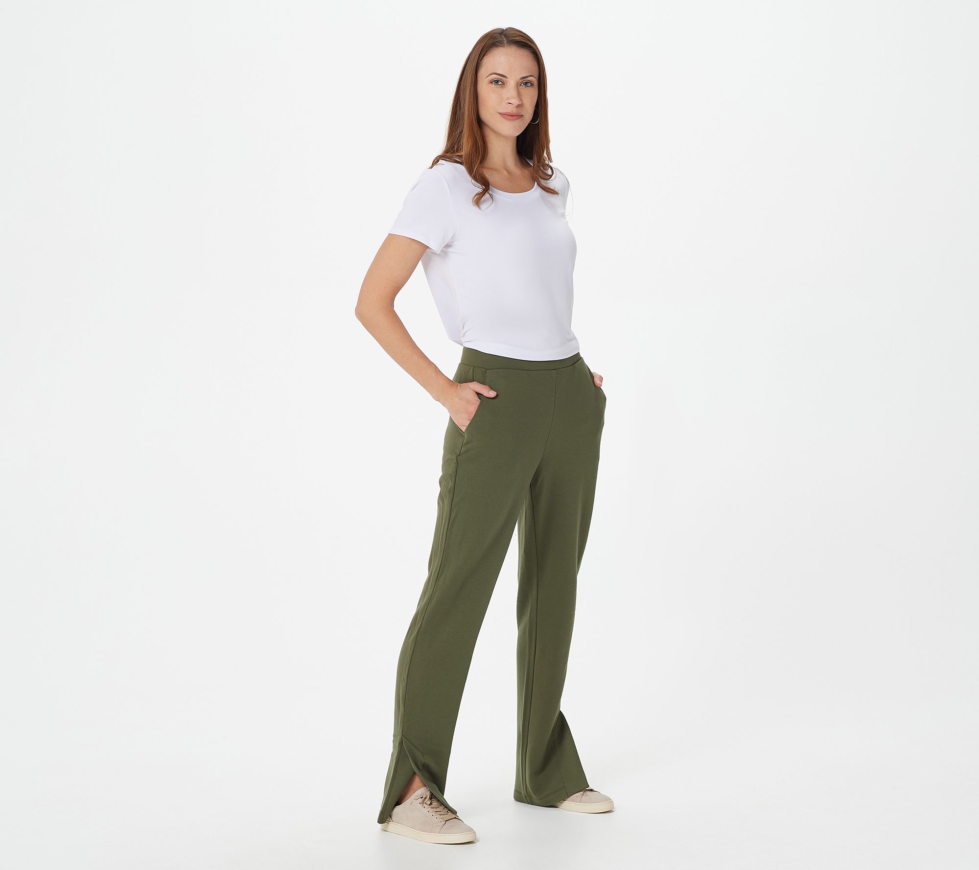 Dress yourself up in these chic-as-can-be pants, made of comfy brushed French terry knit material. From the Lisa Rinna Collection.