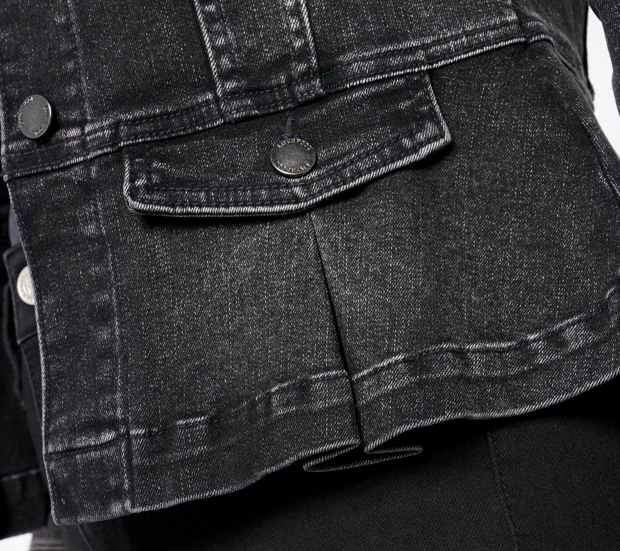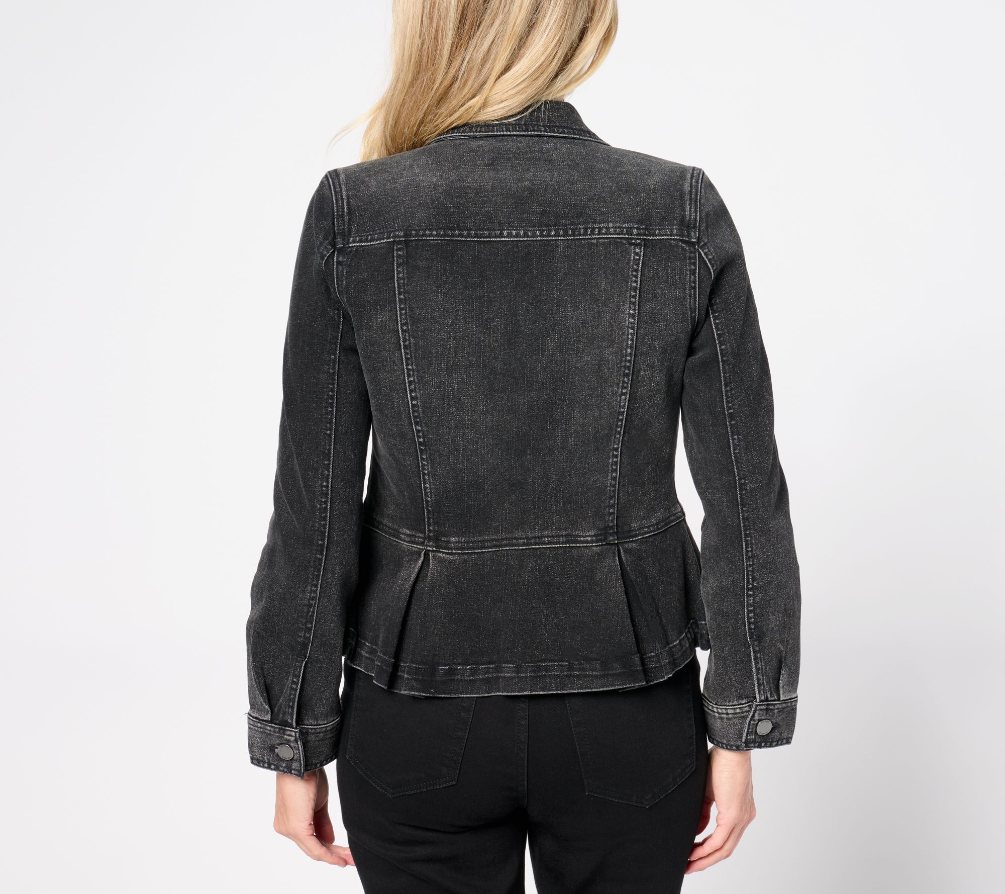 Put some pep(lum) in your step! This stylishly seamed jacket is crafted in tailored stretch denim, so it moves with you -- not against you -- whether you're traveling, commuting, or pub hopping! From Liverpool Los Angeles.
