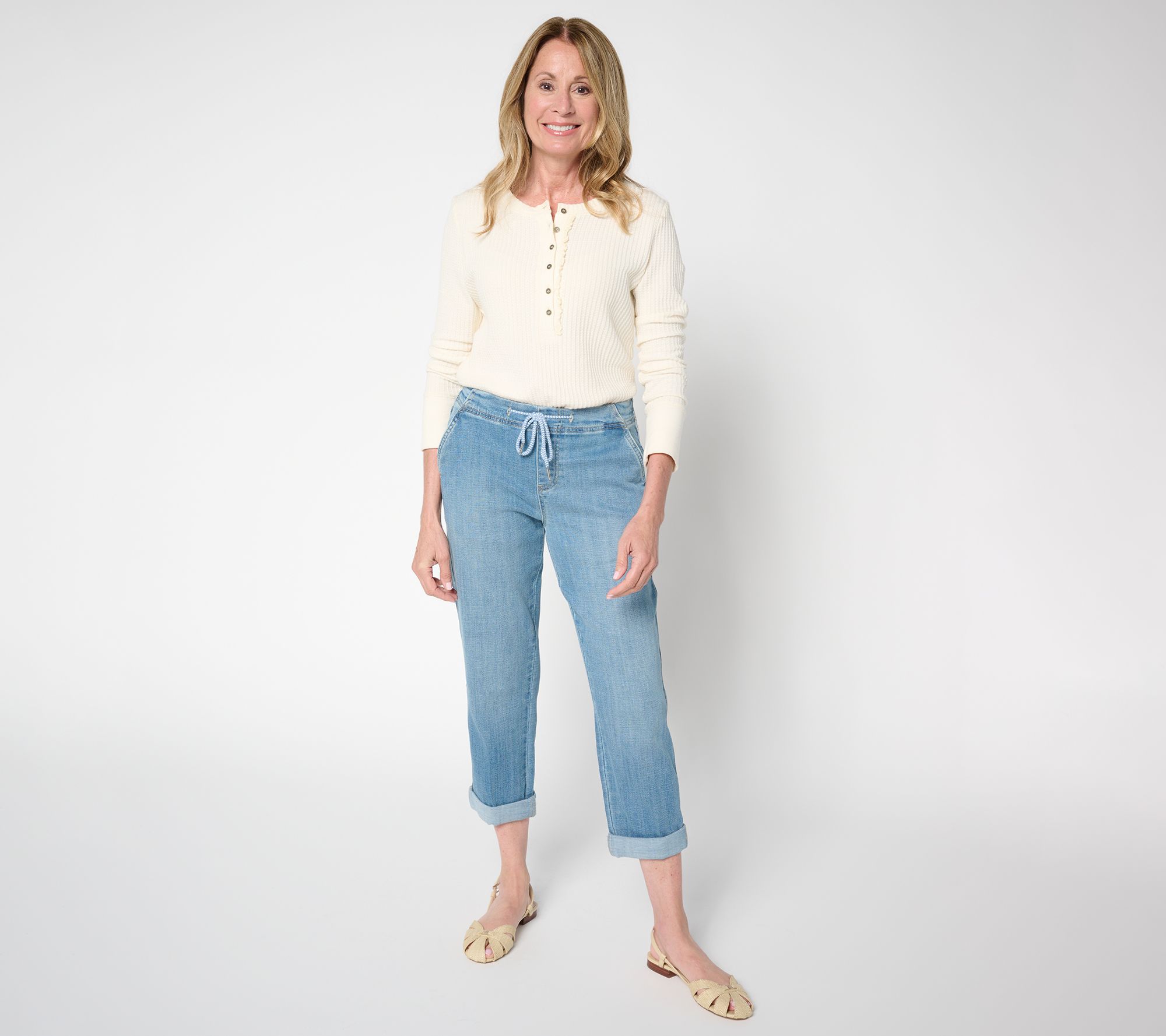 Beachcombing, biking, or just walking a seaside boardwalk -- these Rascal pull-ons are prepped for anything on your active agenda (with rollable cuffs to keep a cool, casual vibe). Feel like tucking? An adjustable tie front takes care of that, but works just as well when oversized hoodies (and couch or hammock visits) are the demands of the day. From Liverpool Los Angeles.