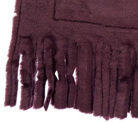 Soft, stylish, chic. Cloak yourself in luxury with this elegant faux shearling wrap. Designed with pocket detailing on the front, it's decorated with charming fringe at both ends. From Lizden.
