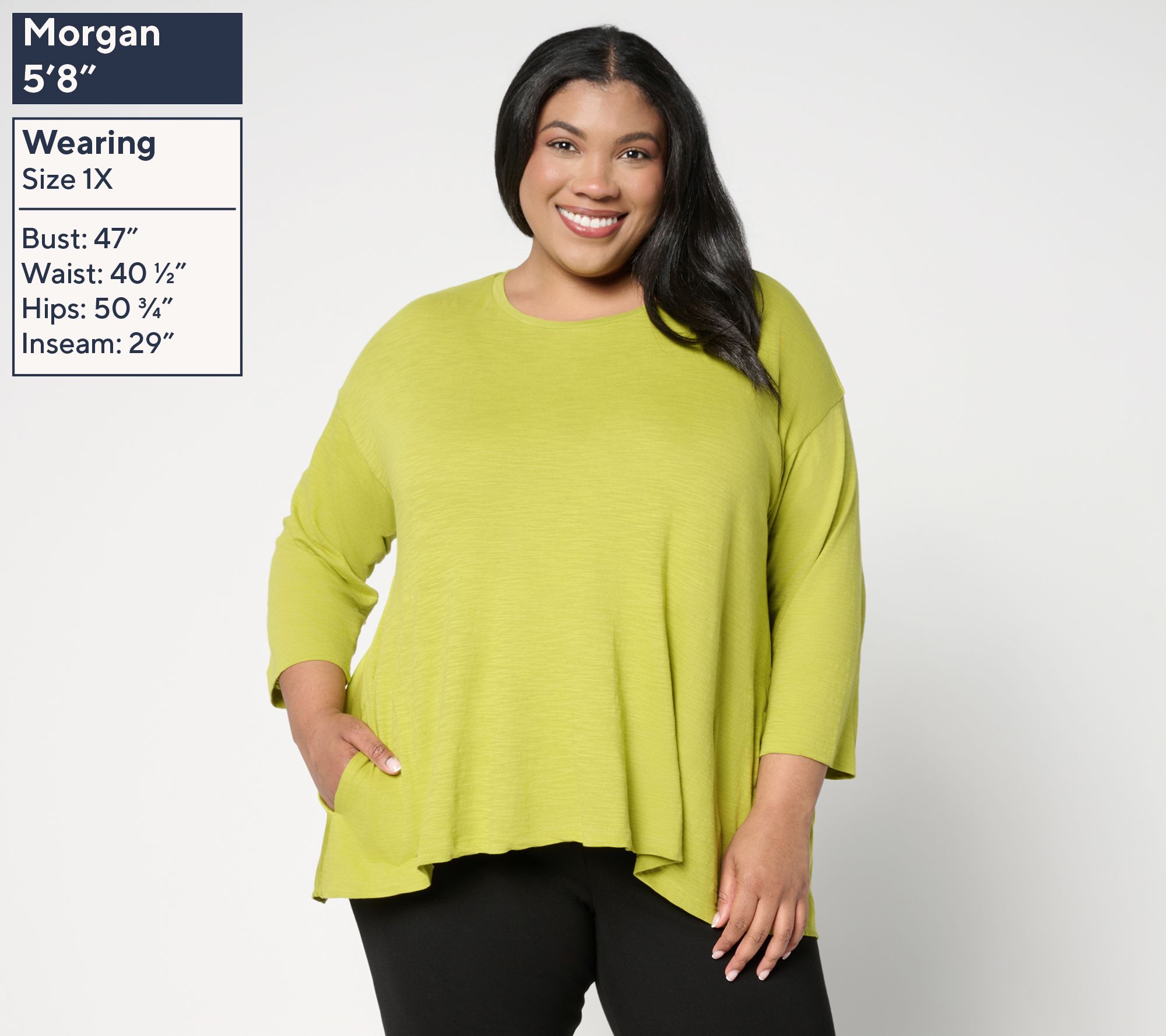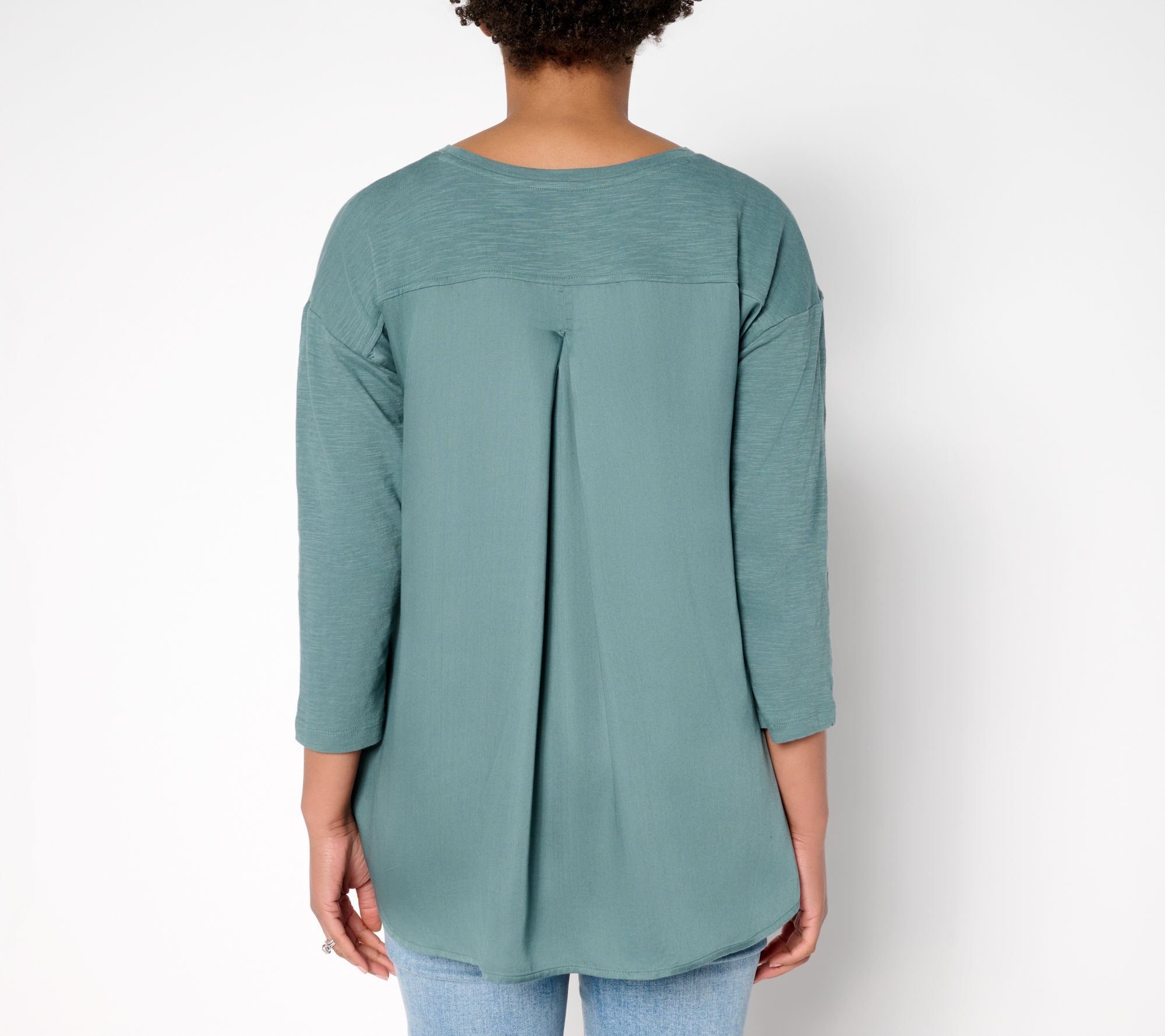 Cue up cool, carefree style for your next coffee run or creative day out with this LOGO A-line top. The 100% cotton body feels soft against your skin, while the modal back, side pockets, and drop-shoulder sleeves add interest from every angle. Top off straight-leg crops and slides for easy mornings or toss it over leggings and thongs for laid-back afternoons. From LOGO by Lori Goldstein®.