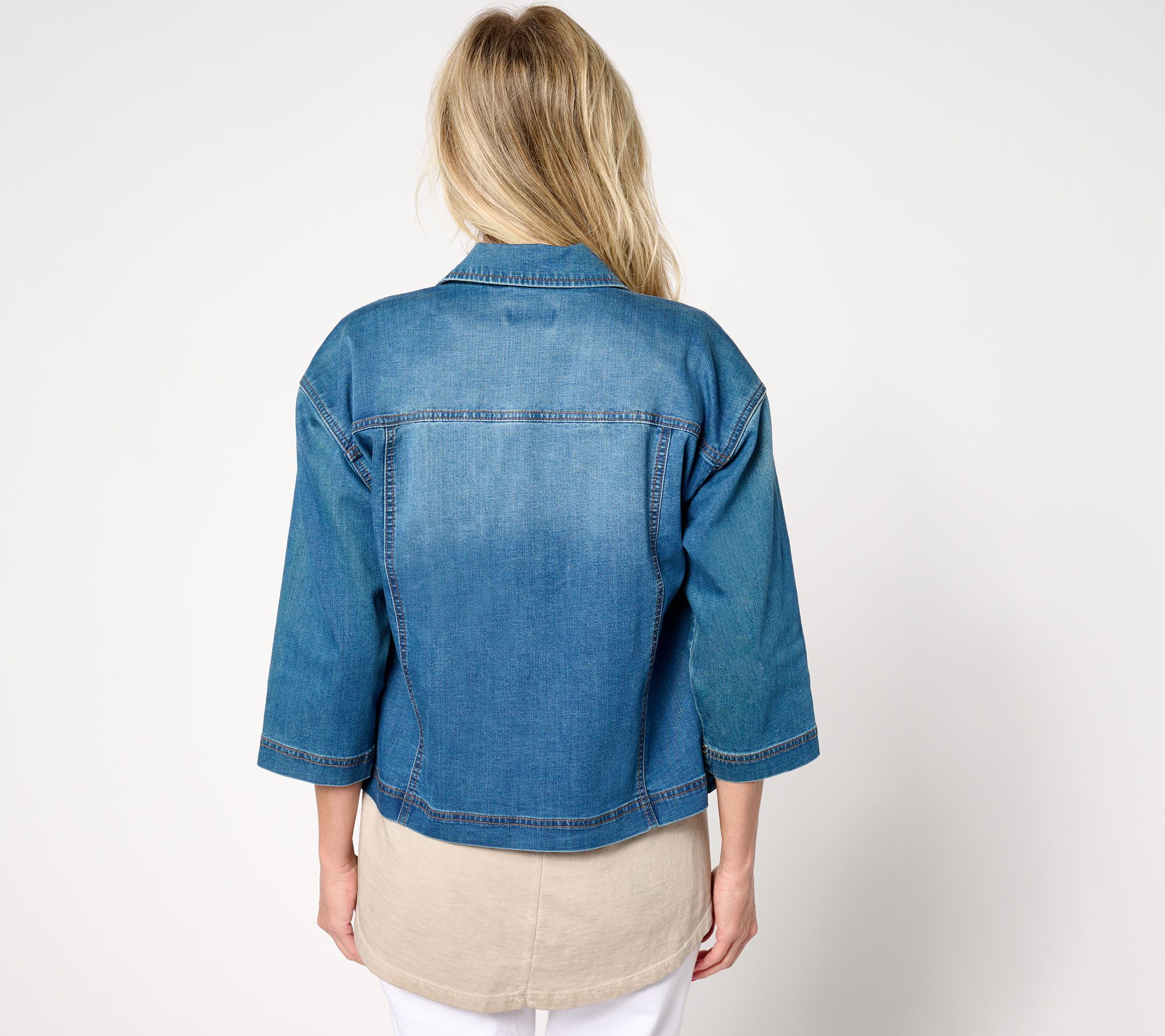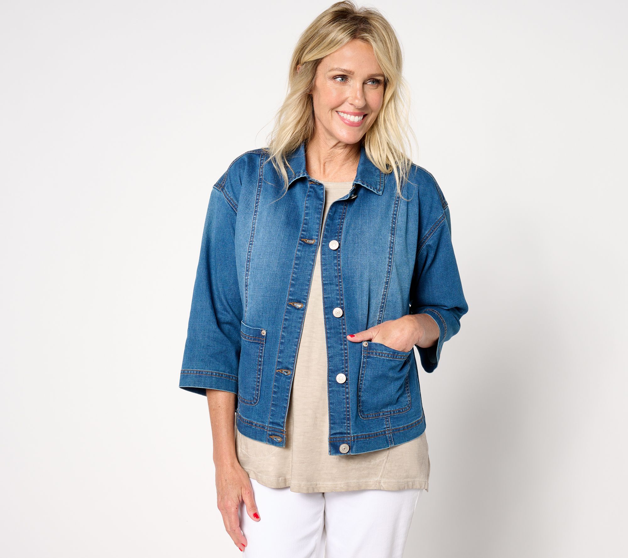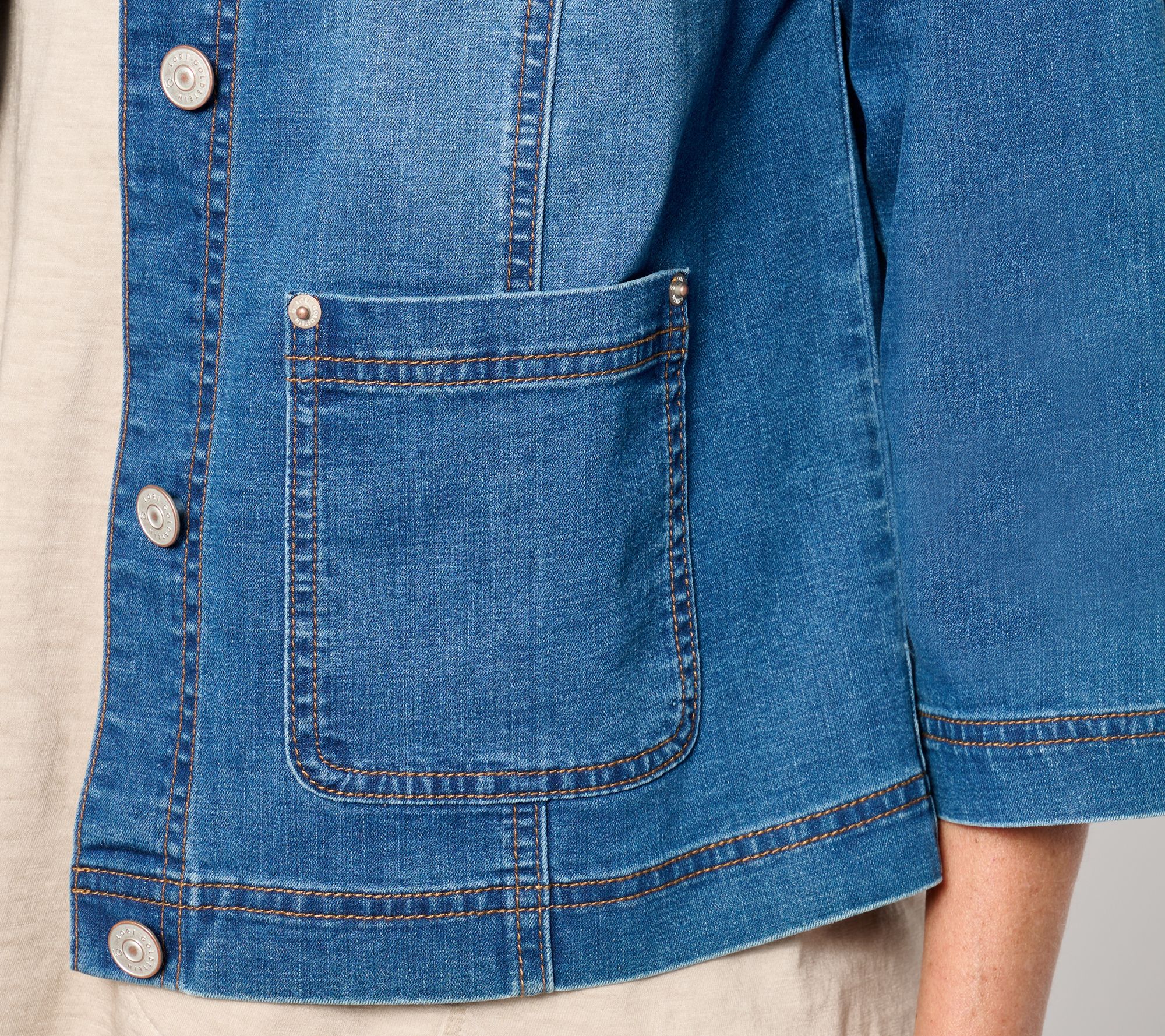 "As Is" LOGO by Lori Goldstein 3/4 Sleeve Denim Jacket w/ Patch Pocket
