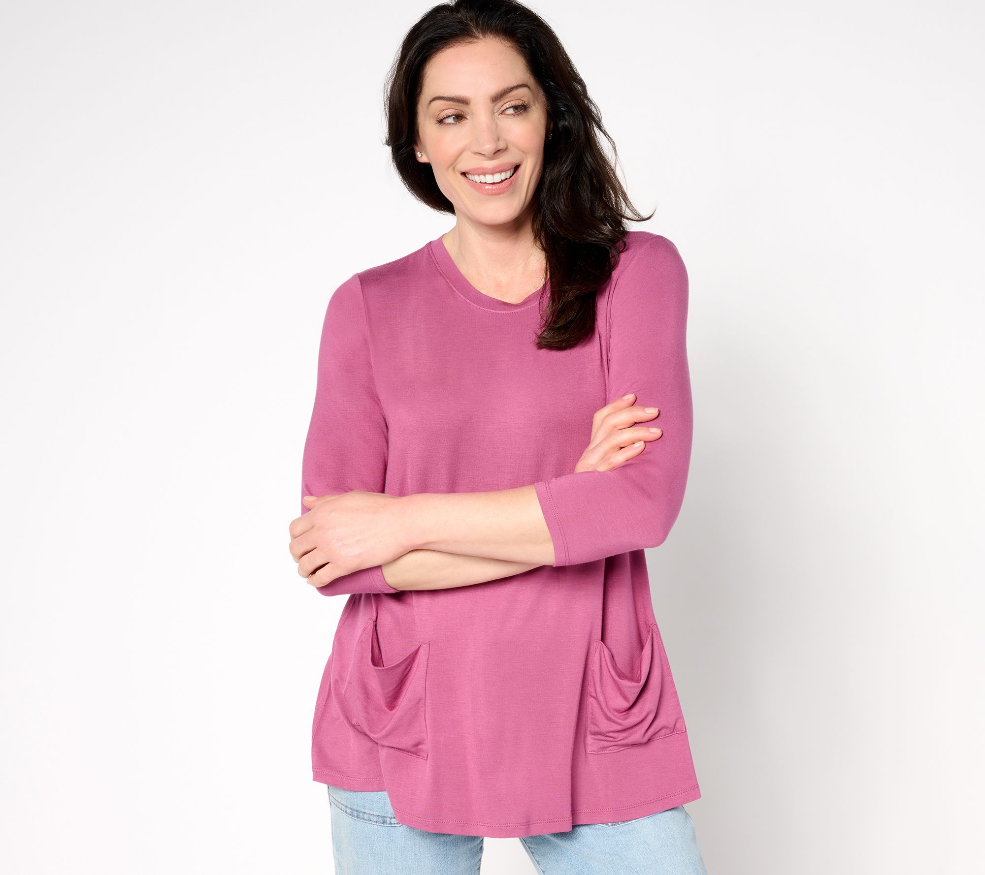 "As Is LOGO by Lori Goldstein 3/4 Sleeve Knit Top with Pockets