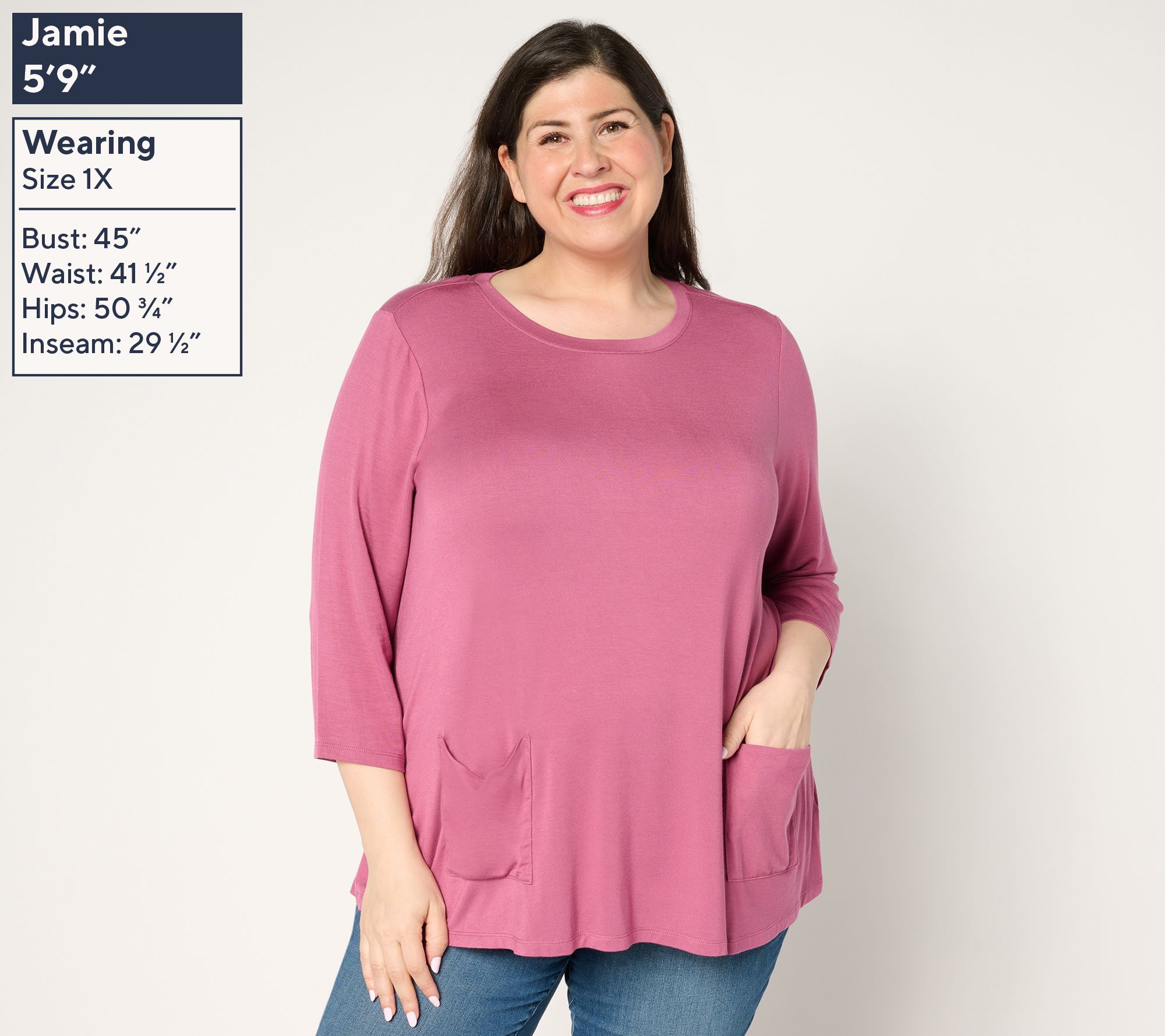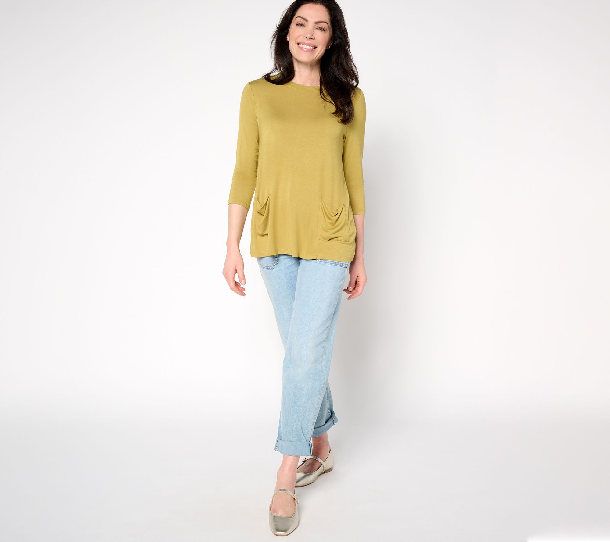 A soft and yummy knit. A flattering swing silhouette. A pair of cowl patch pockets. What more can you ask from a simple tee? This one goes from basic to mood-boosting in seconds flat. From LOGO by Lori Goldstein®.