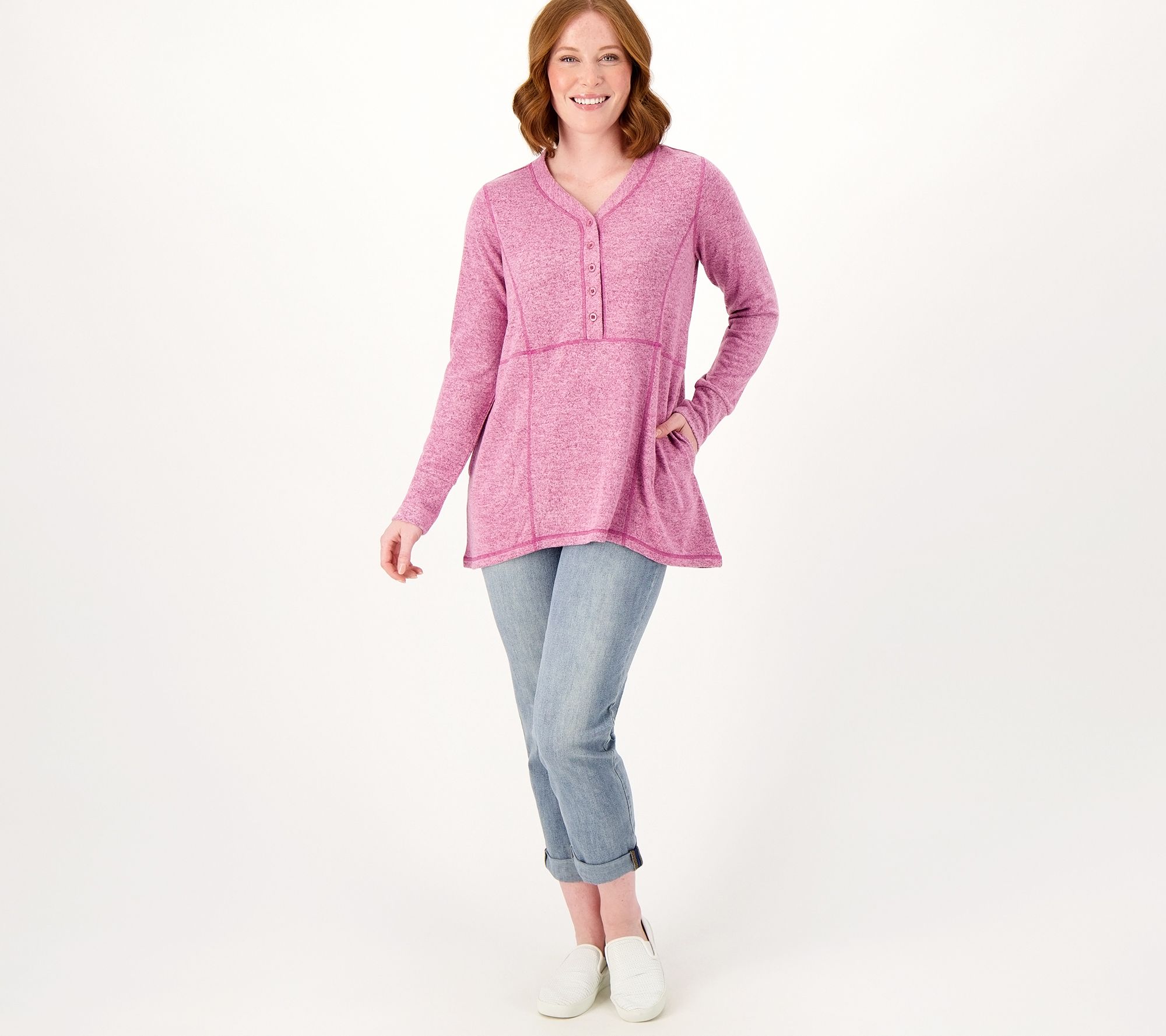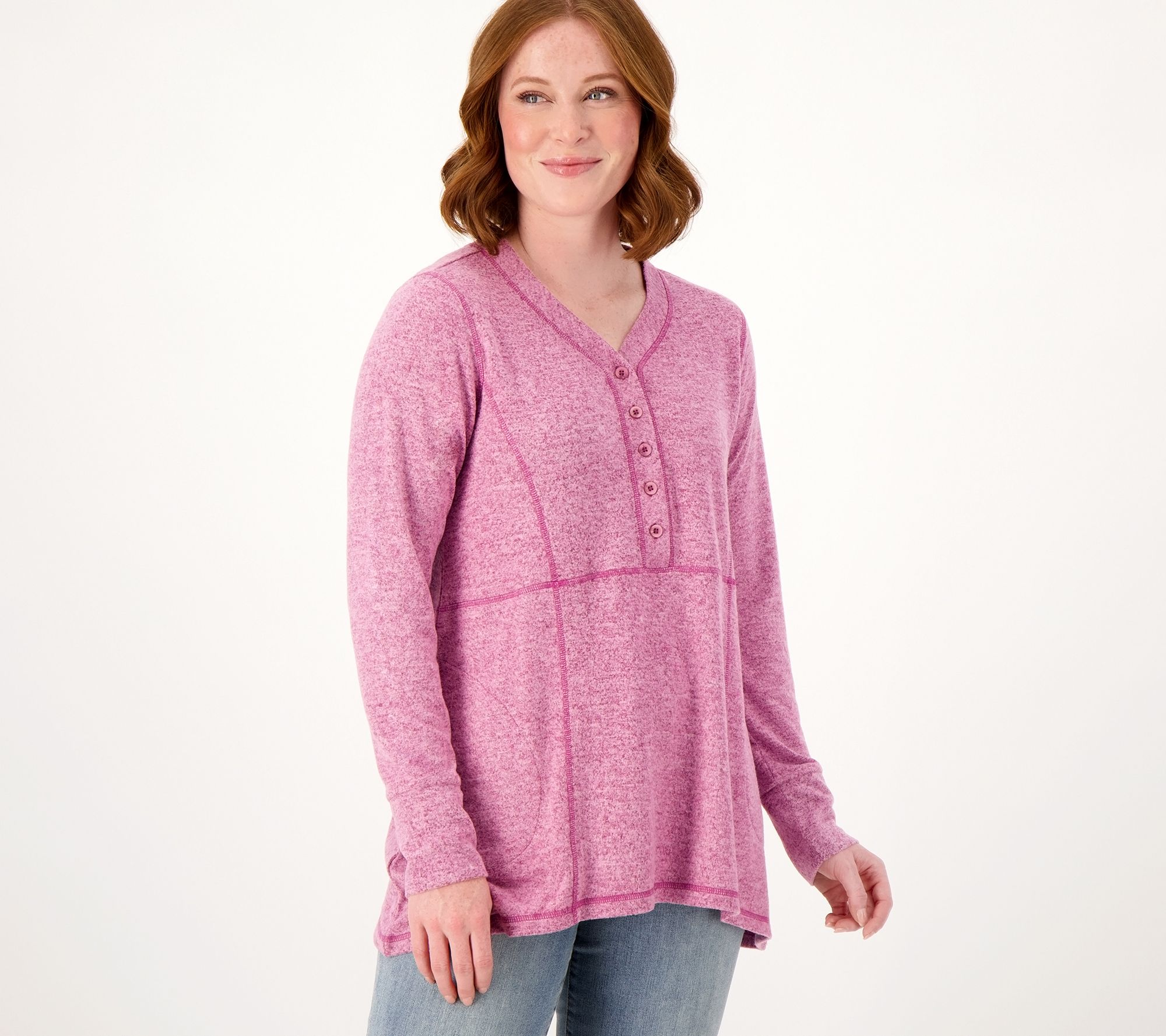 "As Is" LOGO by Lori Goldstein Brushed Sweater Knit Henley Top