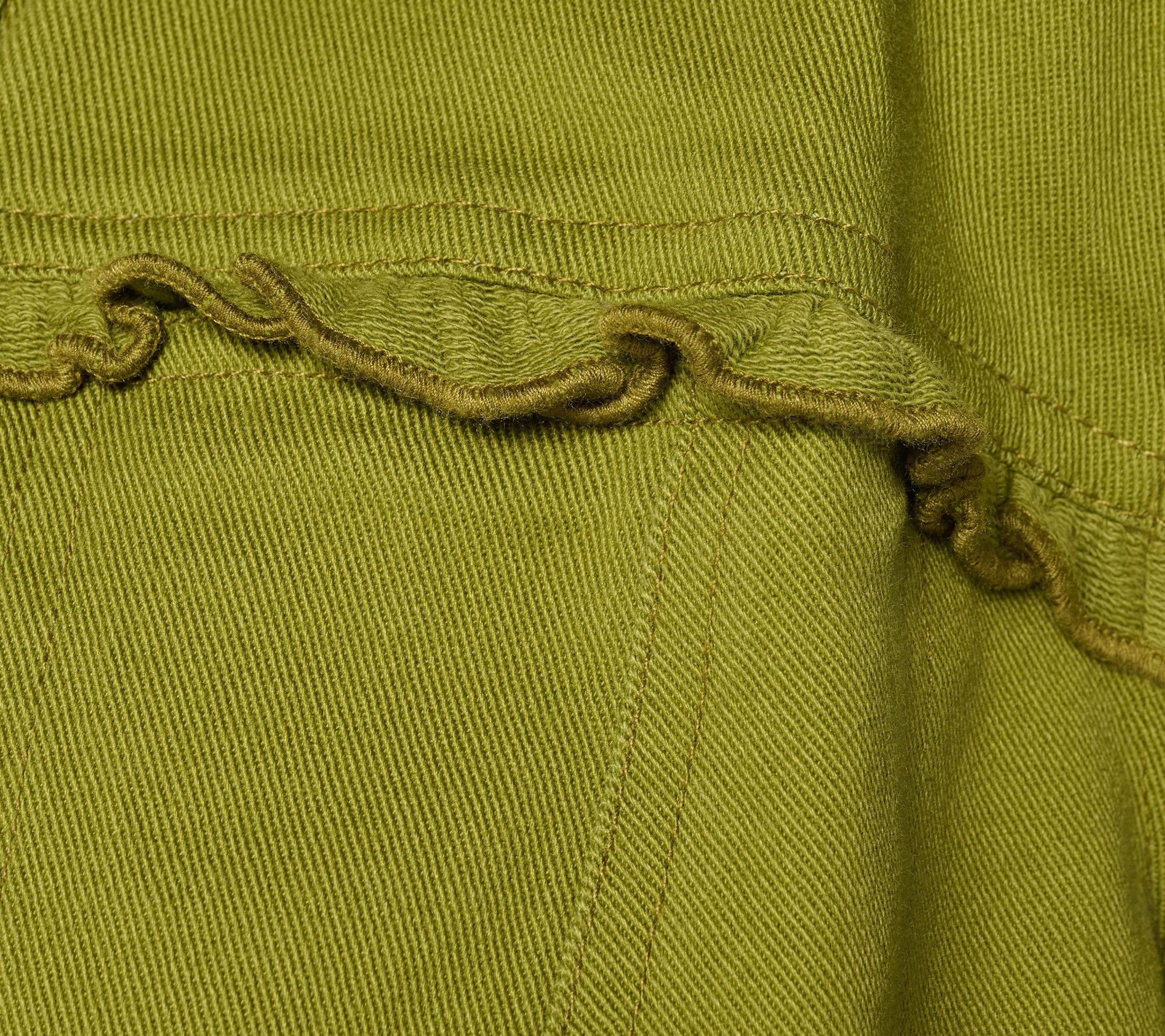 • Features: long sleeves with cuff and button, button-front closure, collar with functional placket, ruffle at front seams, peplum styling