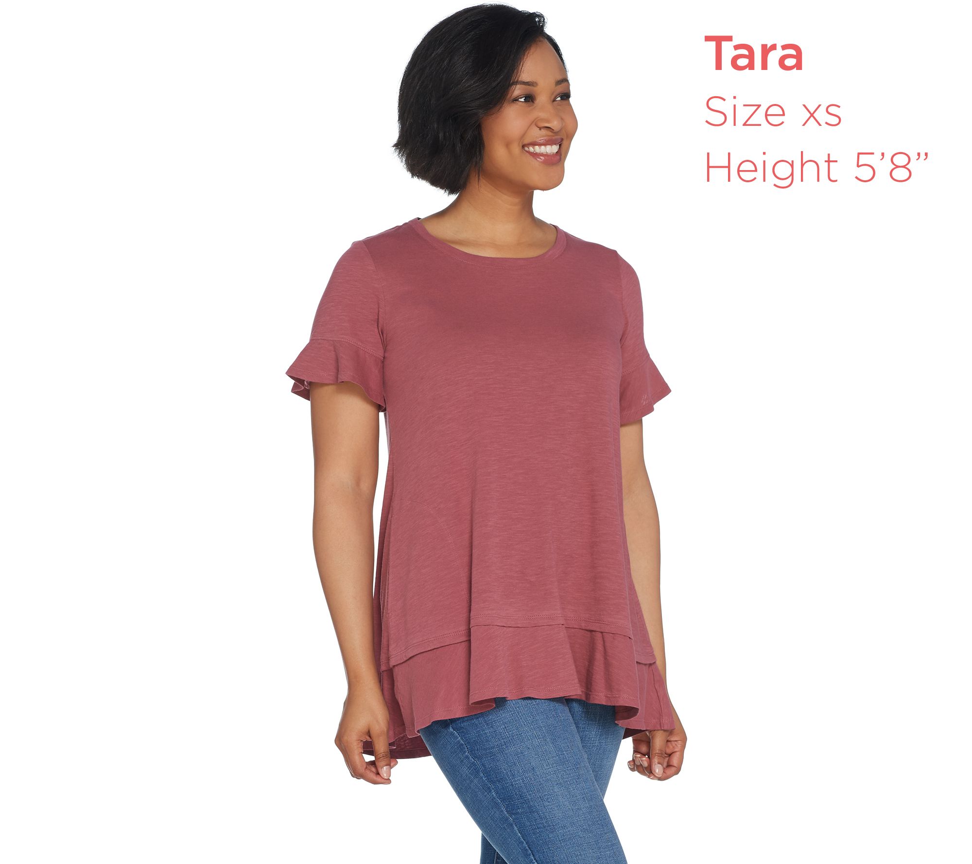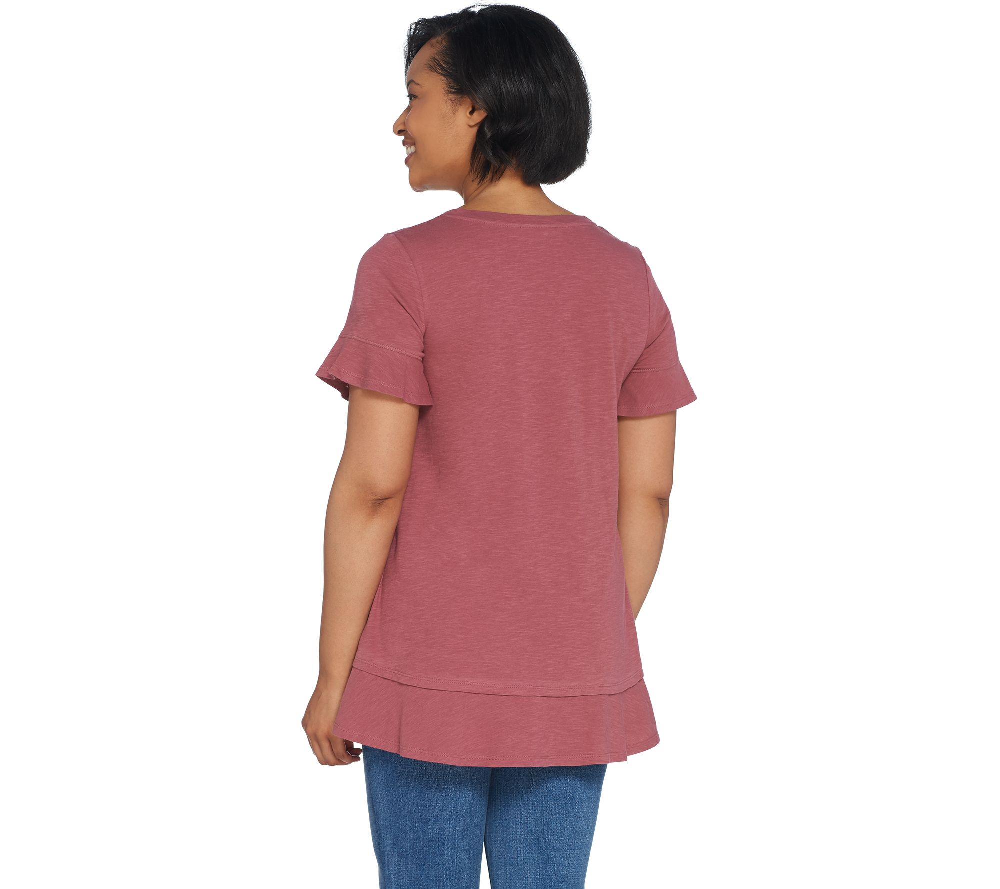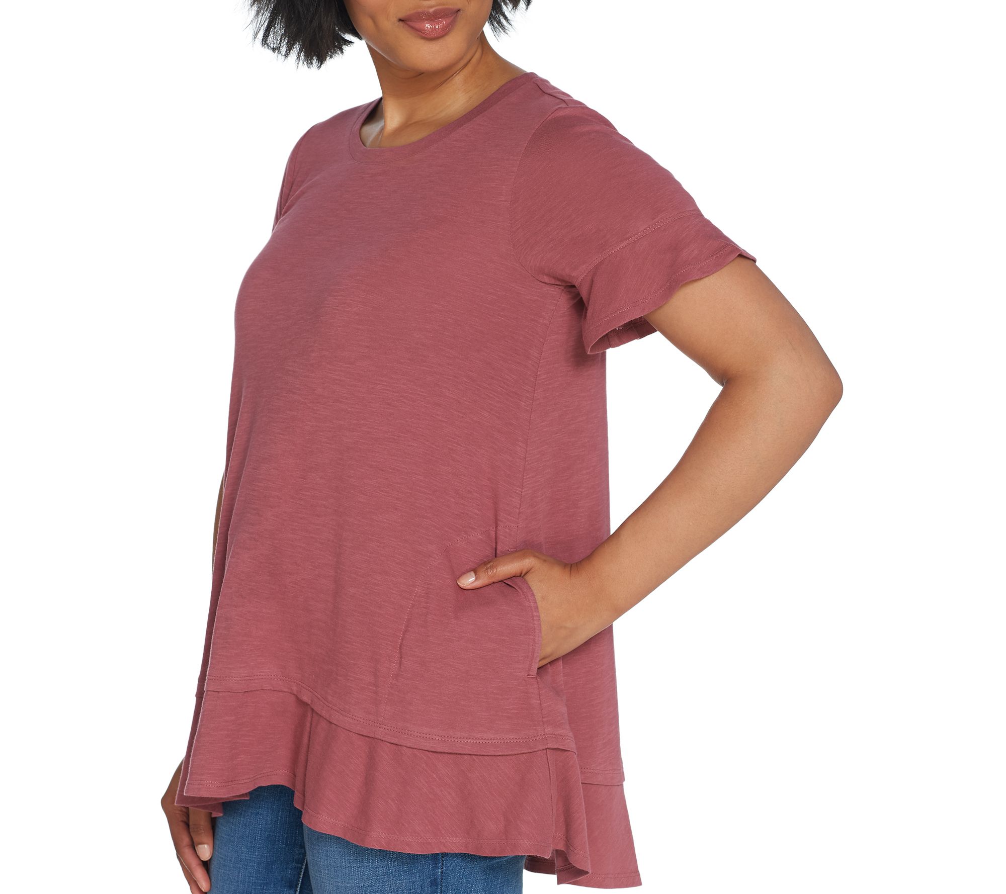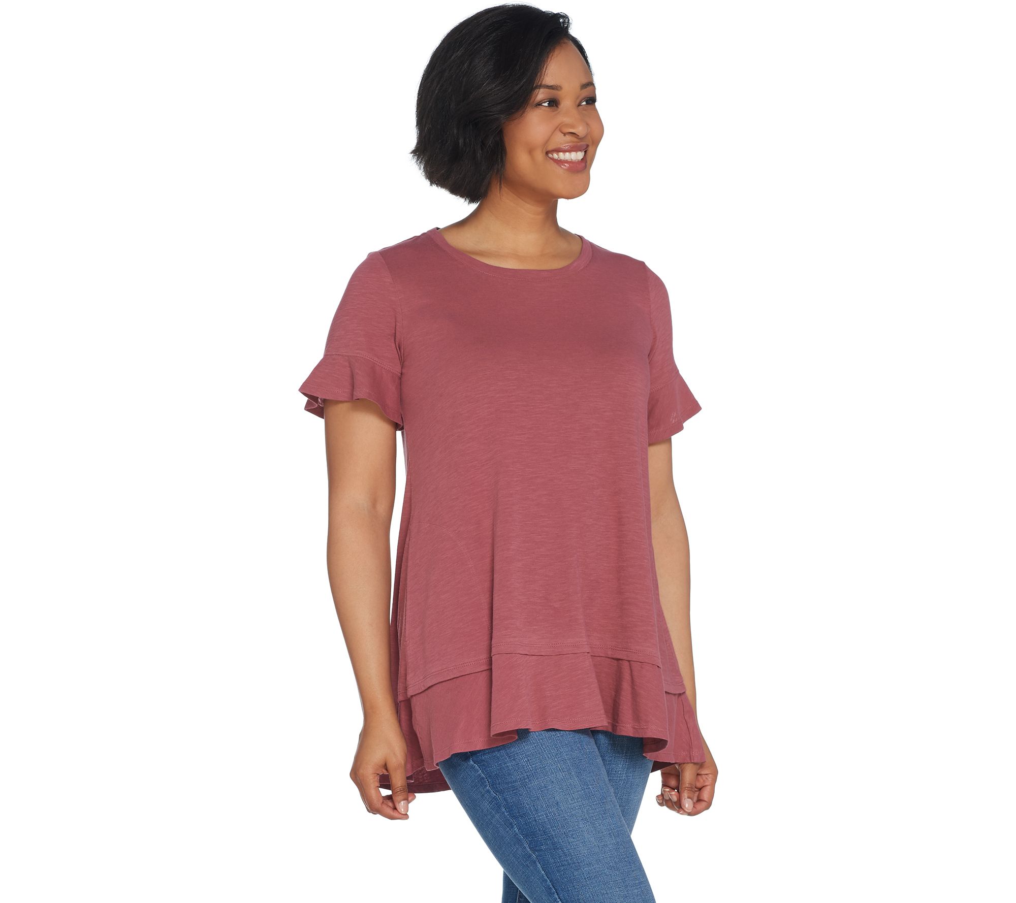 "As Is" LOGO by Lori Goldstein Cotton Slub Knit Tee with Flounce Details