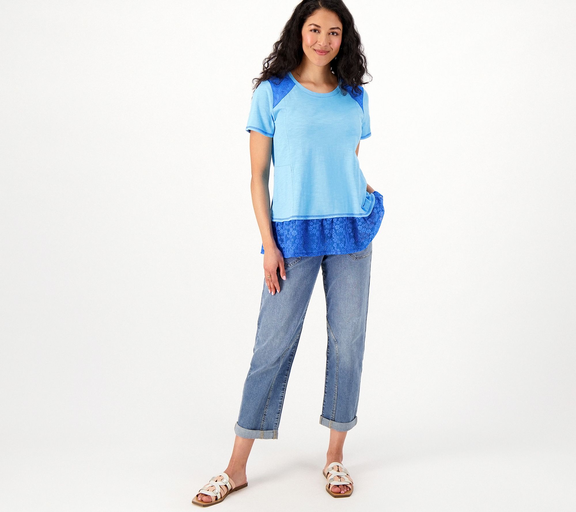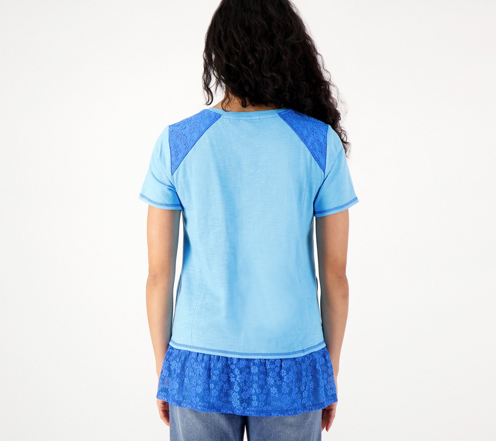 "As Is" LOGO by Lori Goldstein Cotton Slub Top with Lace Hem