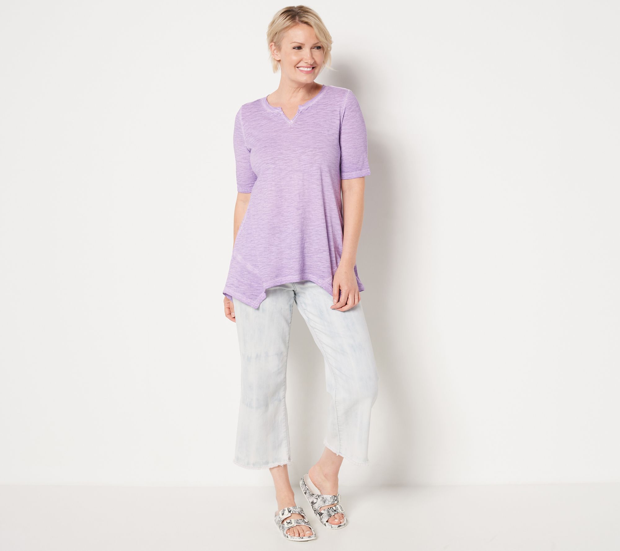 This casual top is the perfect throw-it-on-and-go piece for all your sunny-weather 'fits. And when the weather cools, throw a jacket over this wear-everywhere staple for an edgy look. From LOGO by Lori Goldstein®.