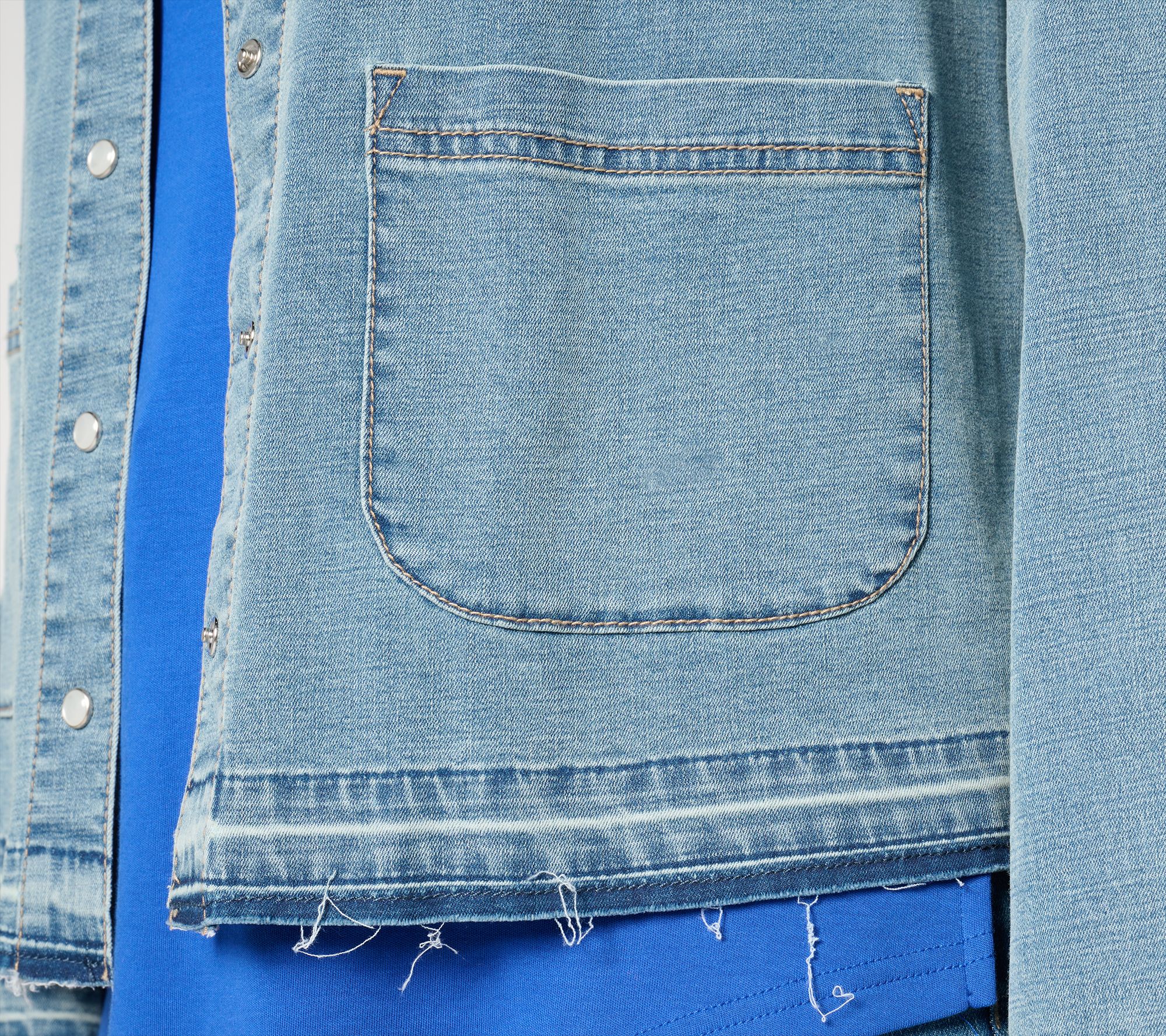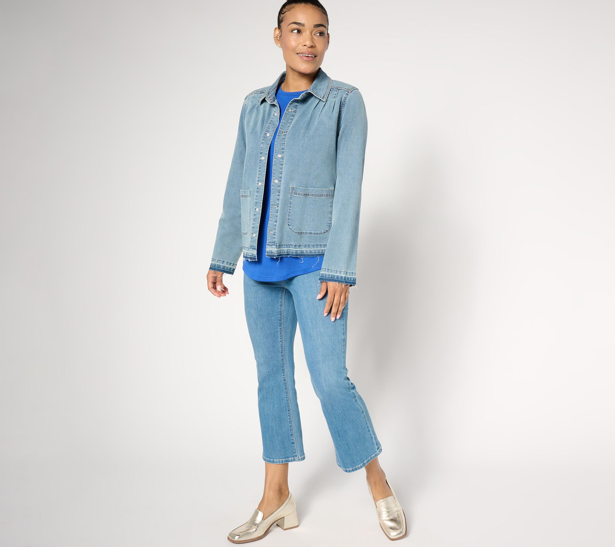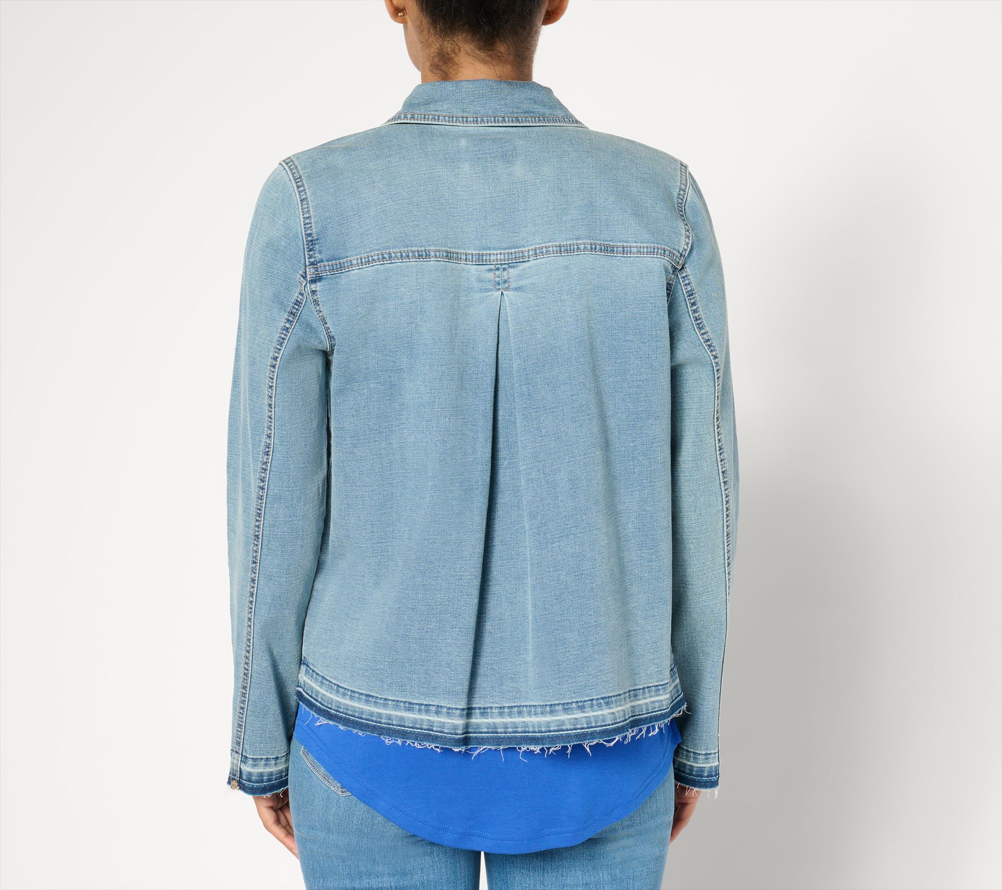 "As Is" LOGO by Lori Goldstein Elbow Sleeve Crosshatch Denim Jacket