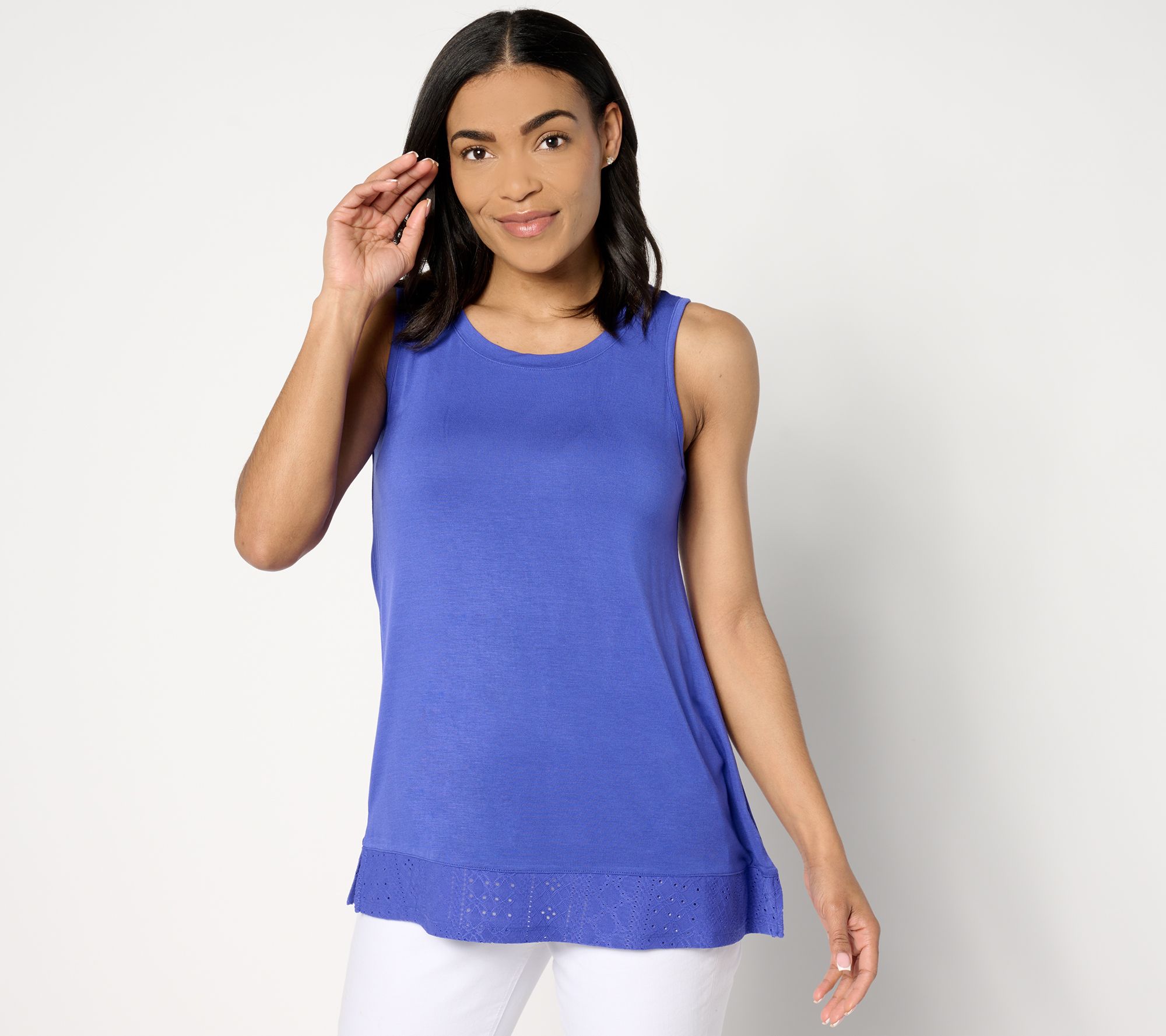"As Is" LOGO by Lori Goldstein Knit Tank with Eyelet Hem
