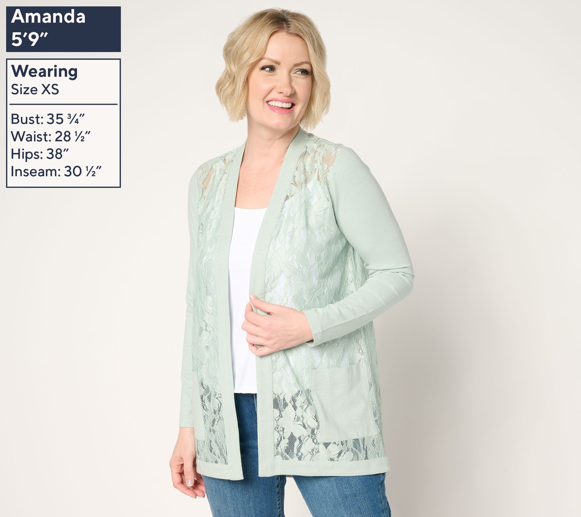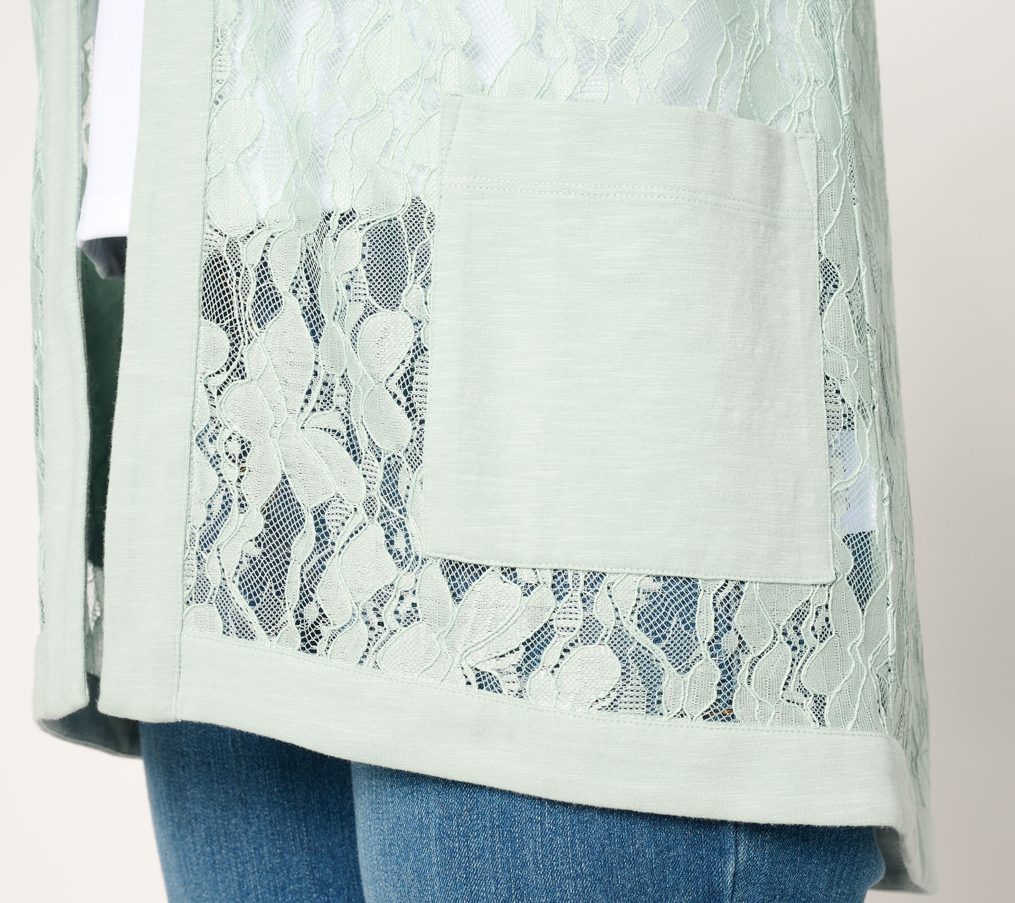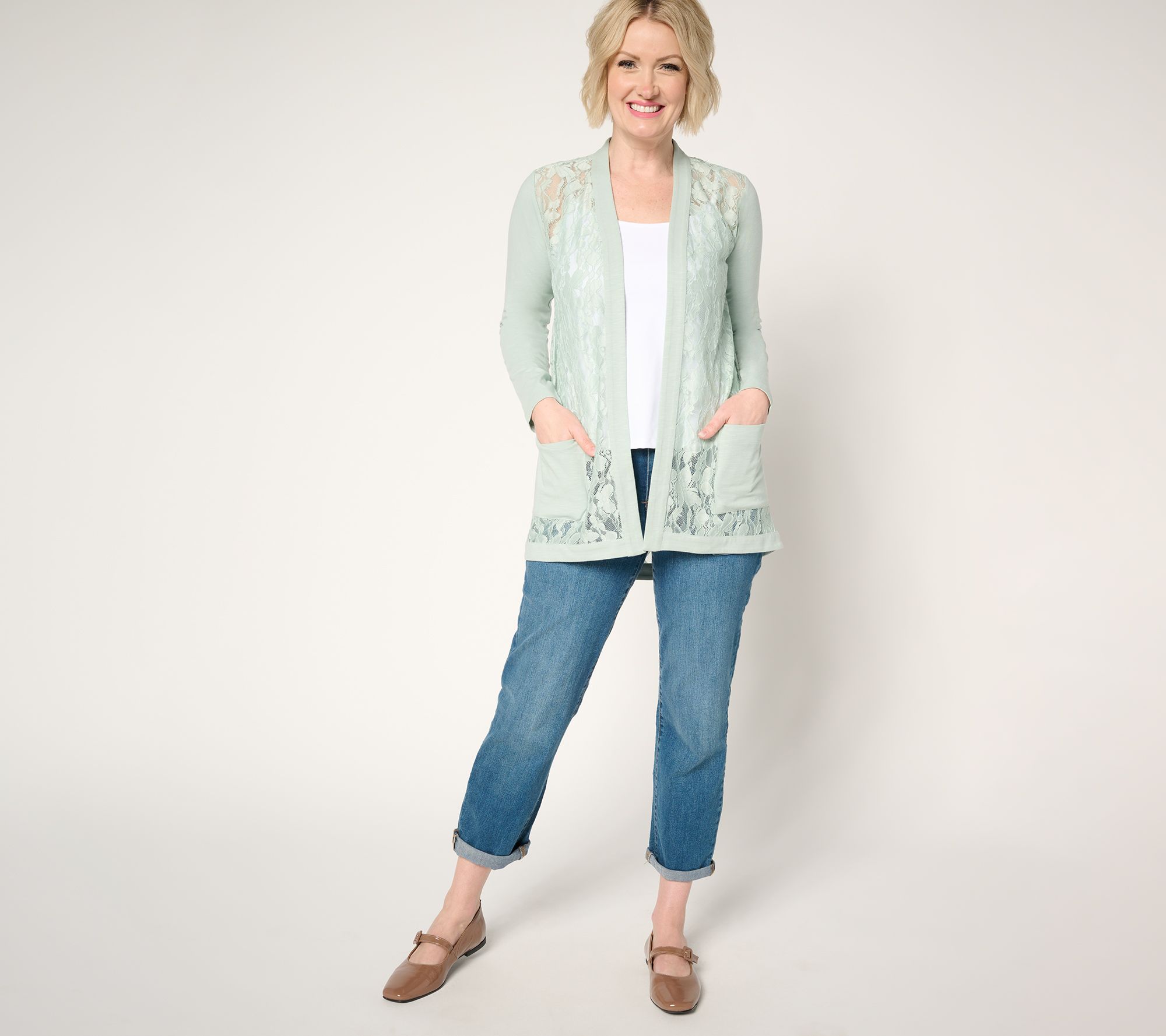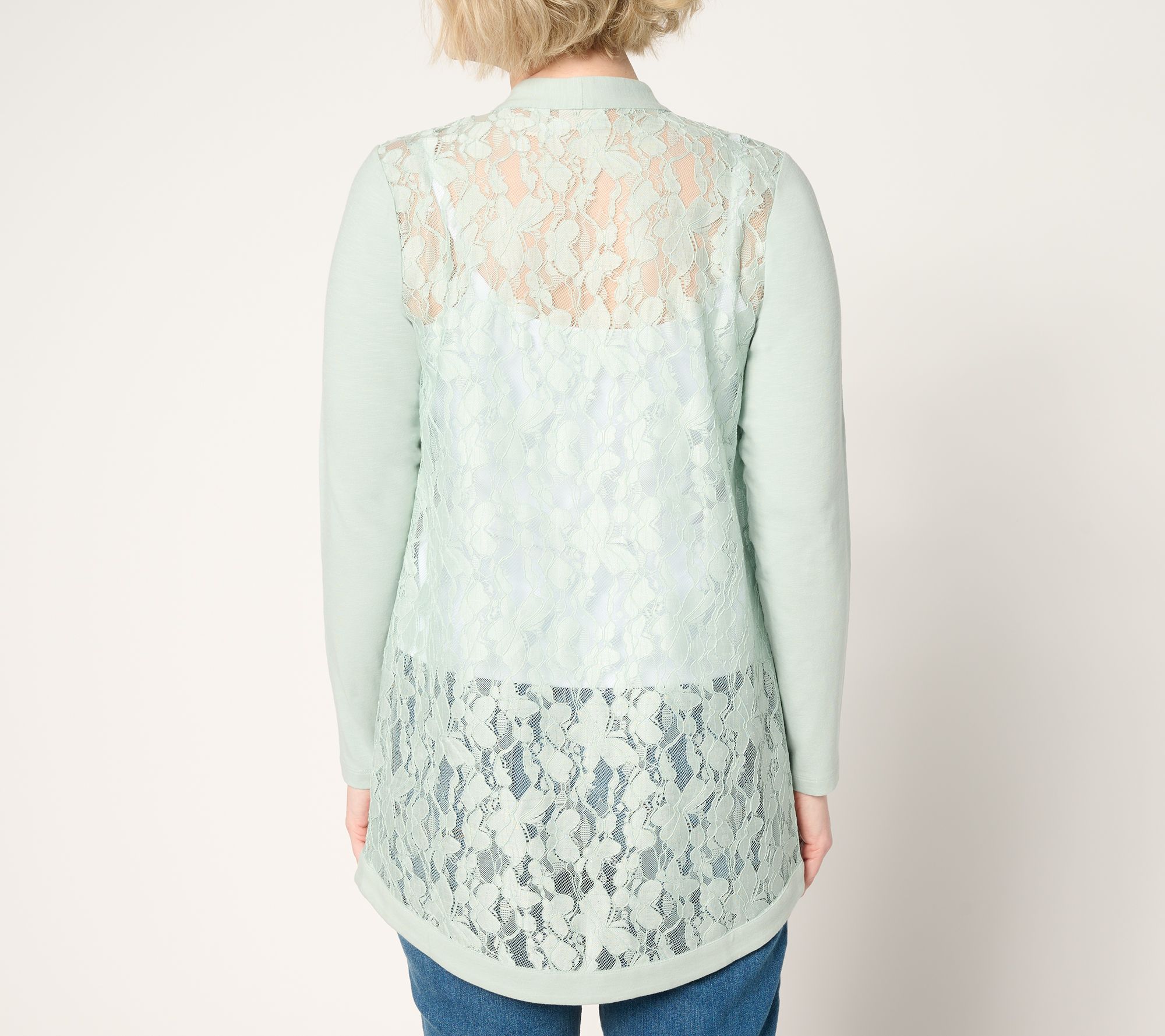 Lace for every day? Yes, please! This mixed media cardigan is perfect for adding a layer of femininity and smooth modal comfort to your look. From LOGO by Lori Goldstein®.