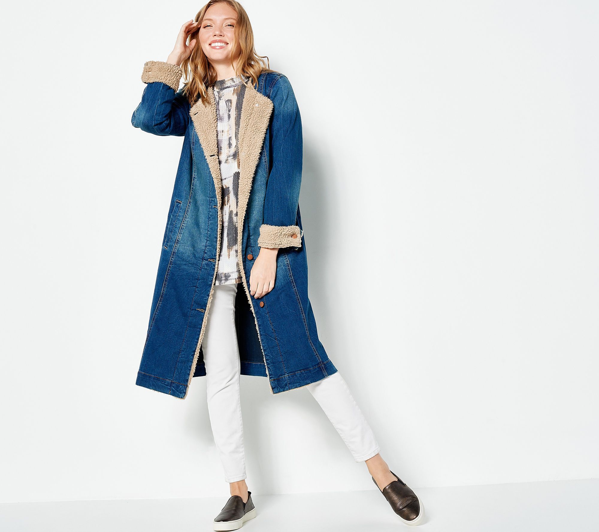 "As Is" LOGO by Lori Goldstein Limited Edition Denim Coat w/ Sherpa