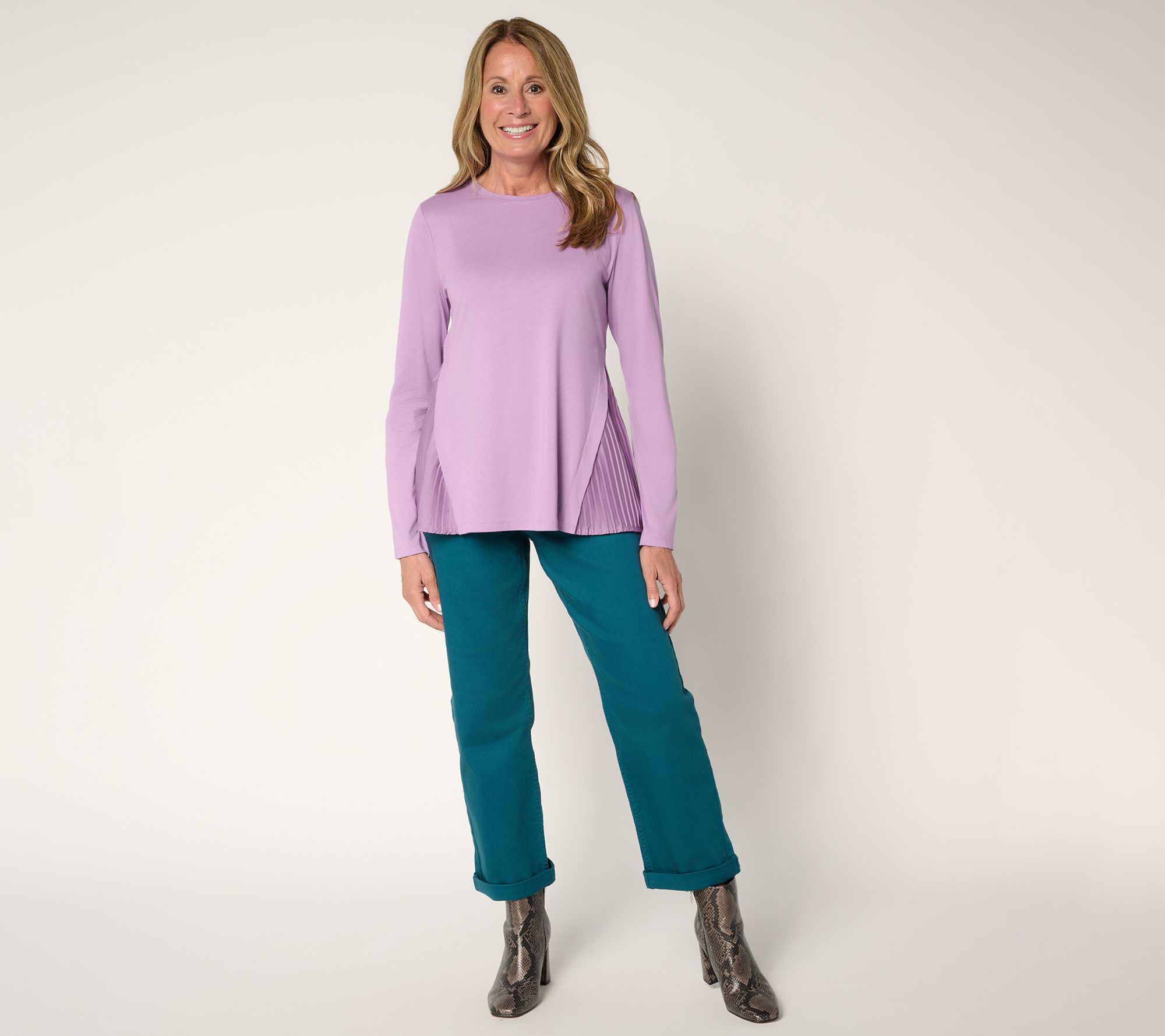"As Is" LOGO by Lori Goldstein Long Sleeve Tee with Side Pleats