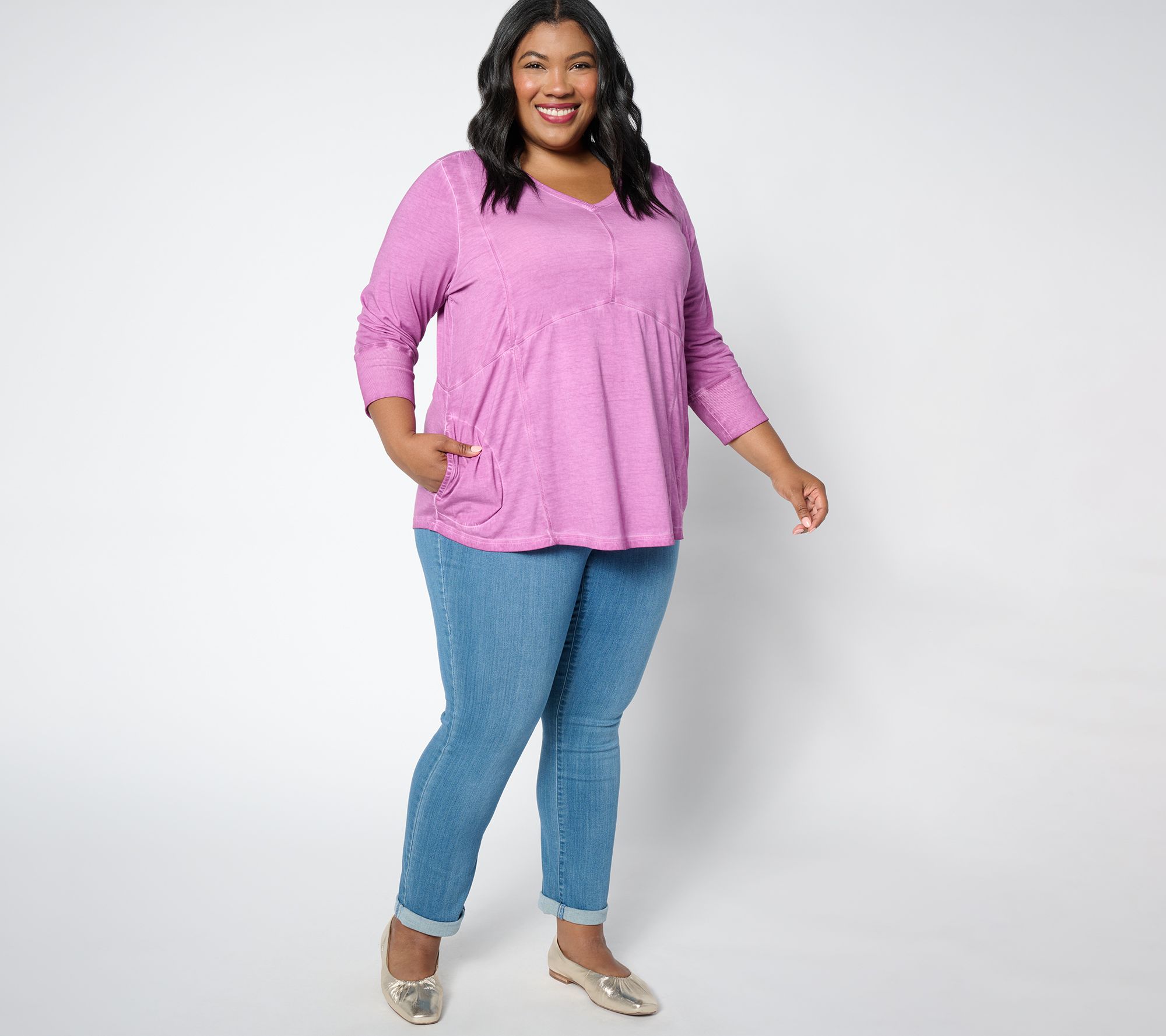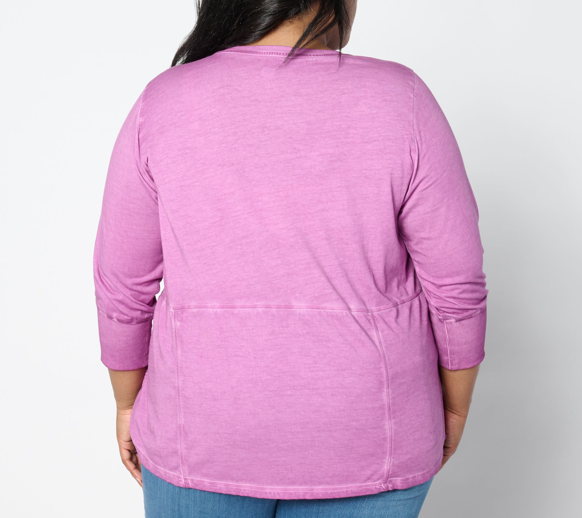 "As Is" LOGO by Lori Goldstein Long Sleeve V-Neck Washed Top