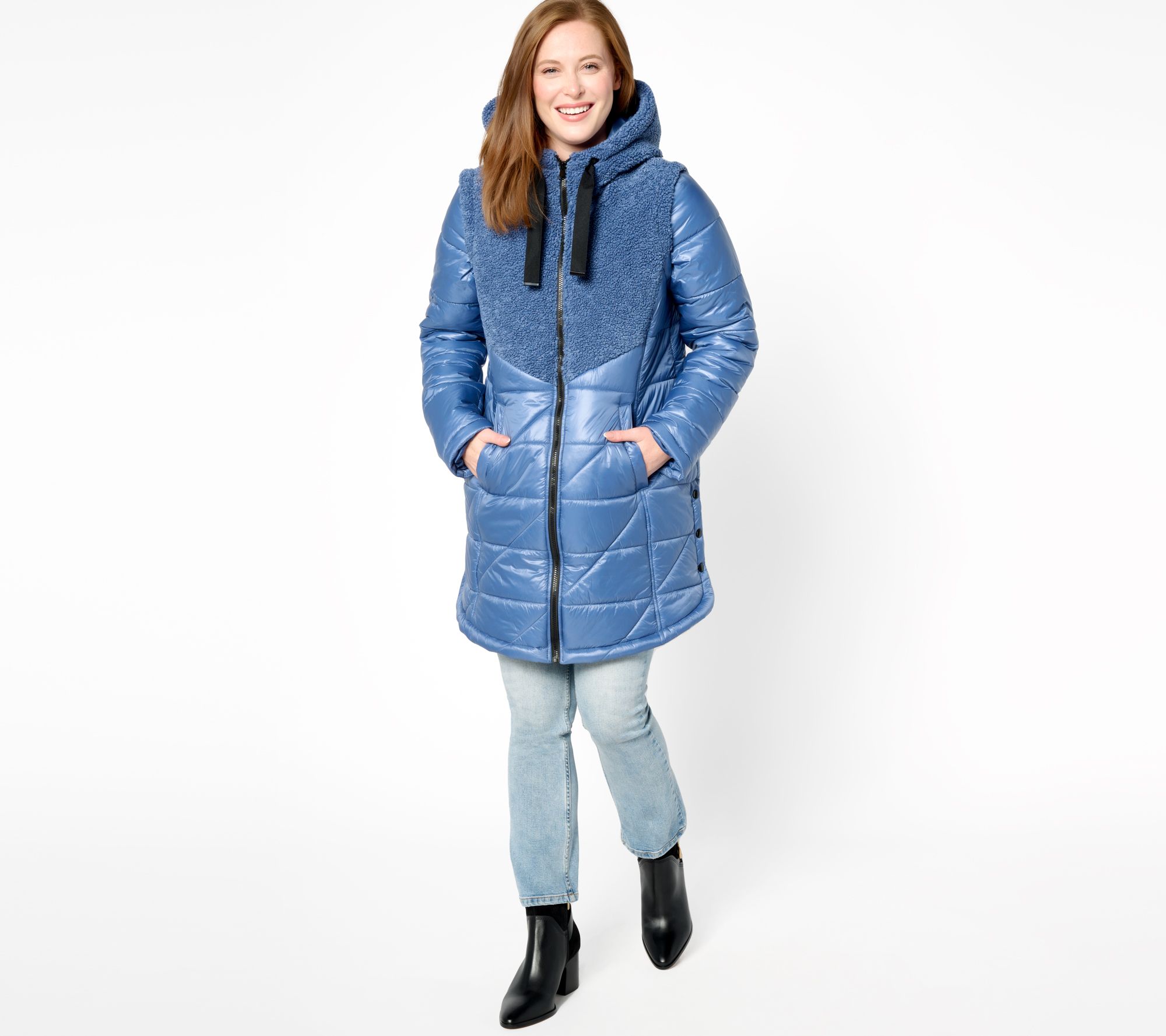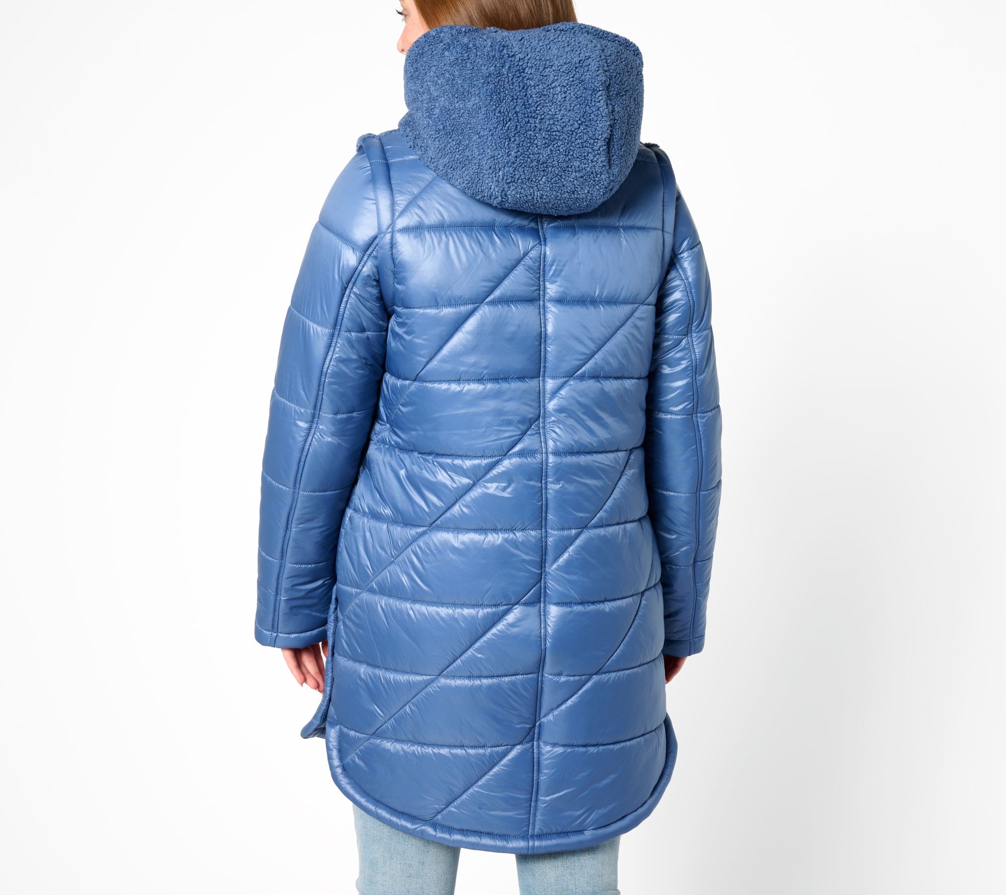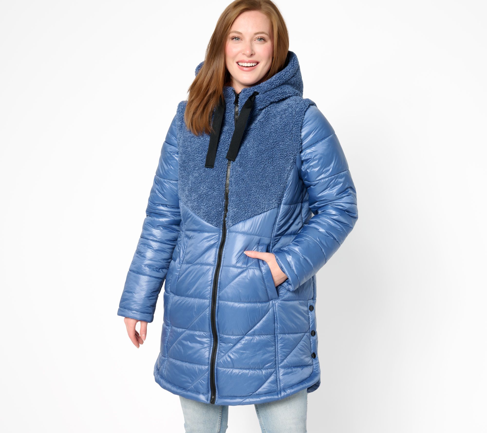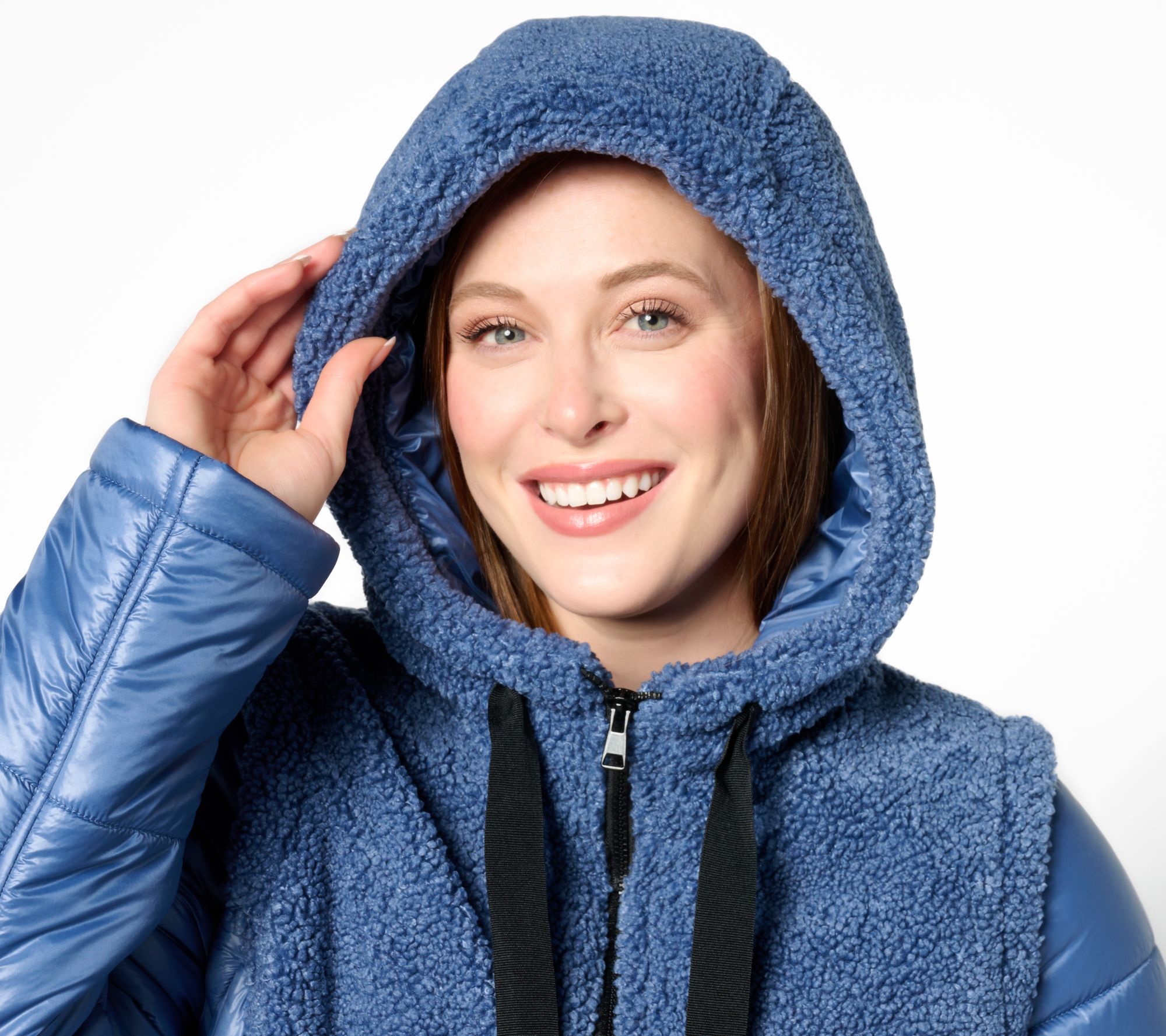Trend-right sherpa + cutest-ever quilting + removable sleeves! Lori's thought of everything with this comfy puffer that converts to a versatile vest. From LOGO by Lori Goldstein®.