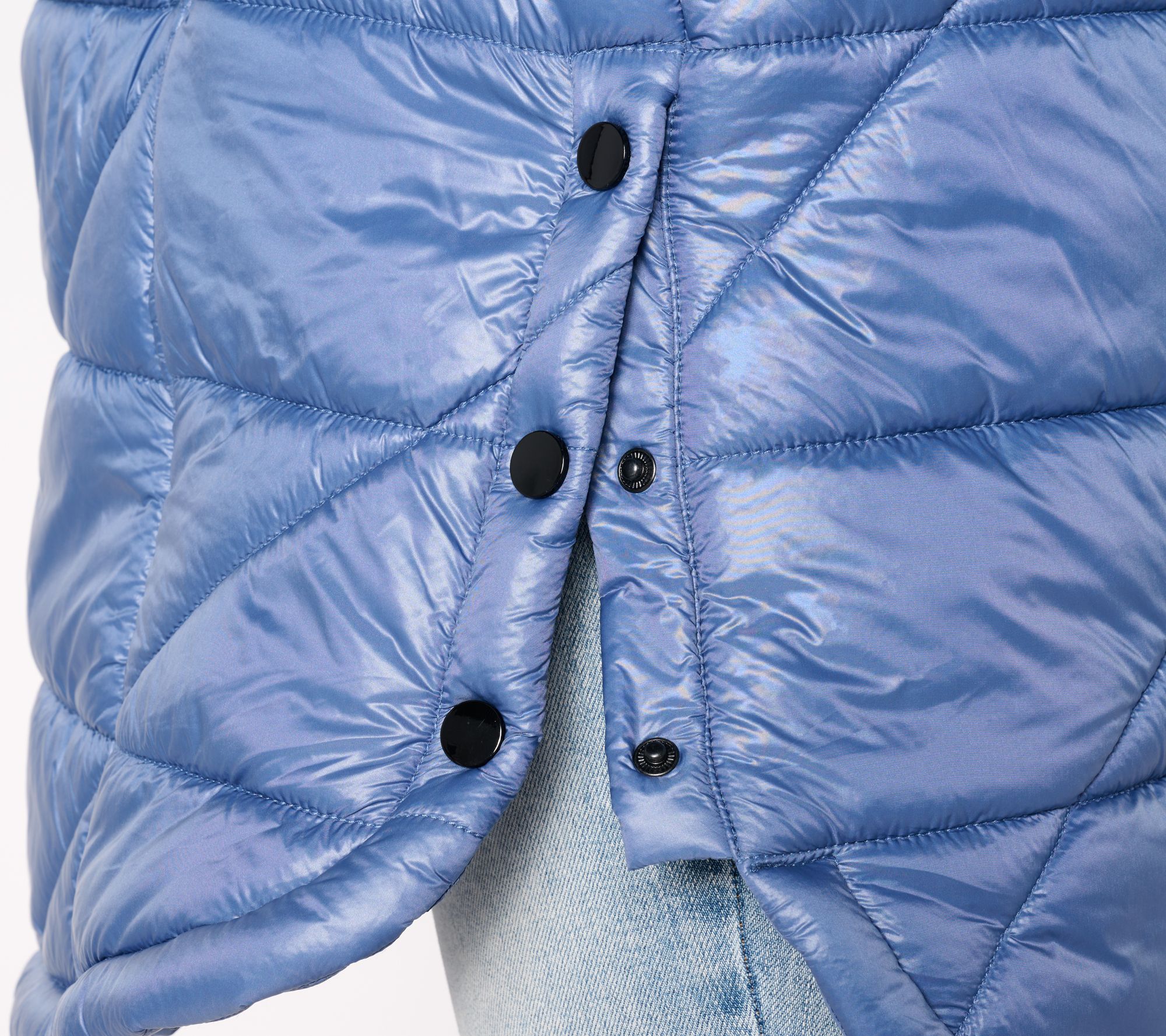 • Features: mix media puffer, quilted body, sherpa body, hood with grosgrain drawstrings, removable long sleeves, converts to sleeveless vest