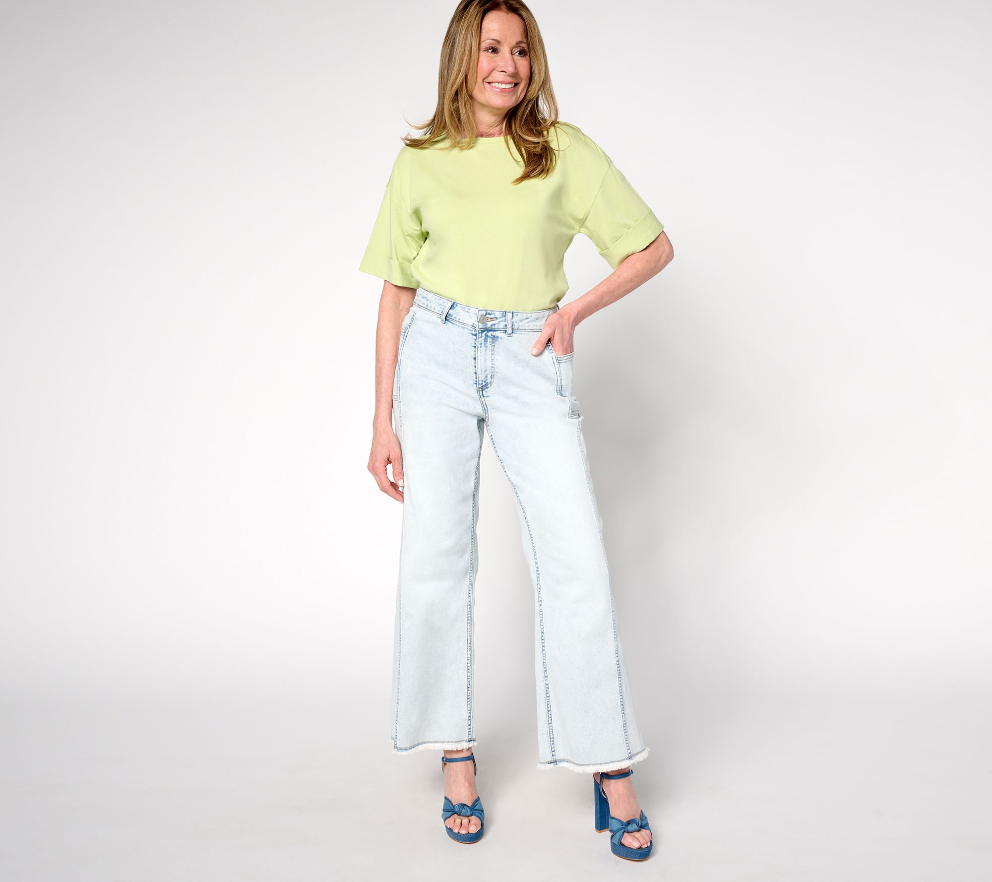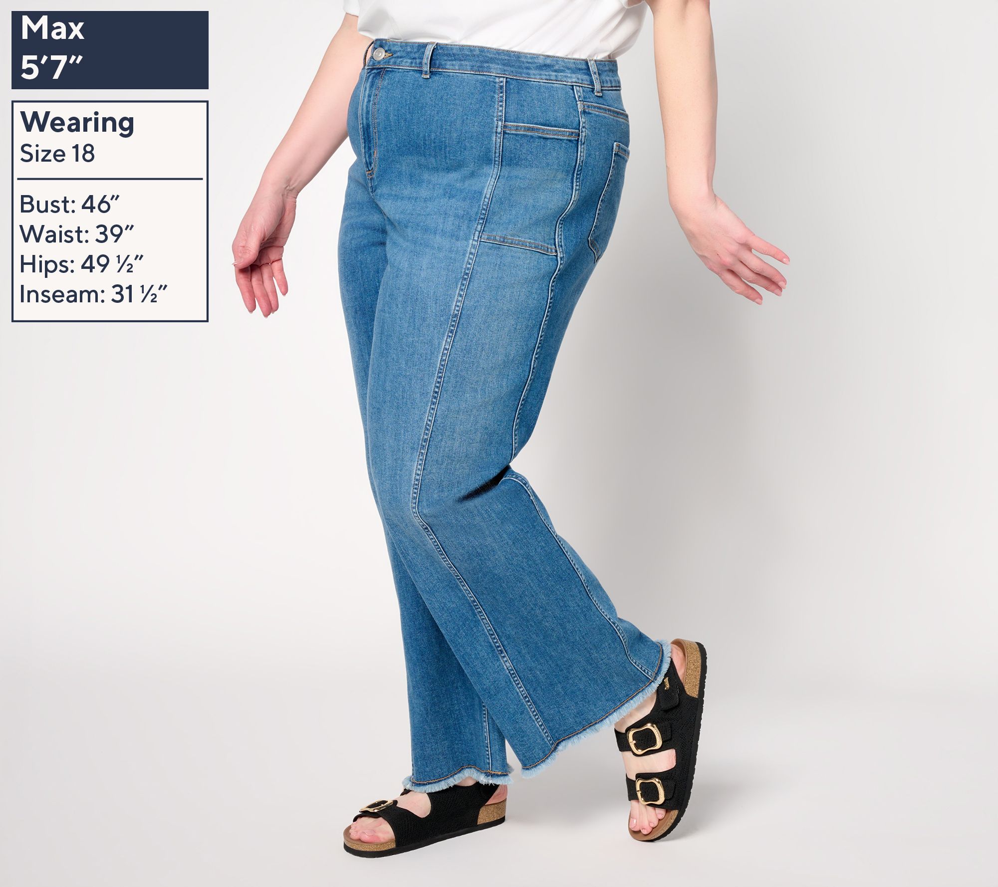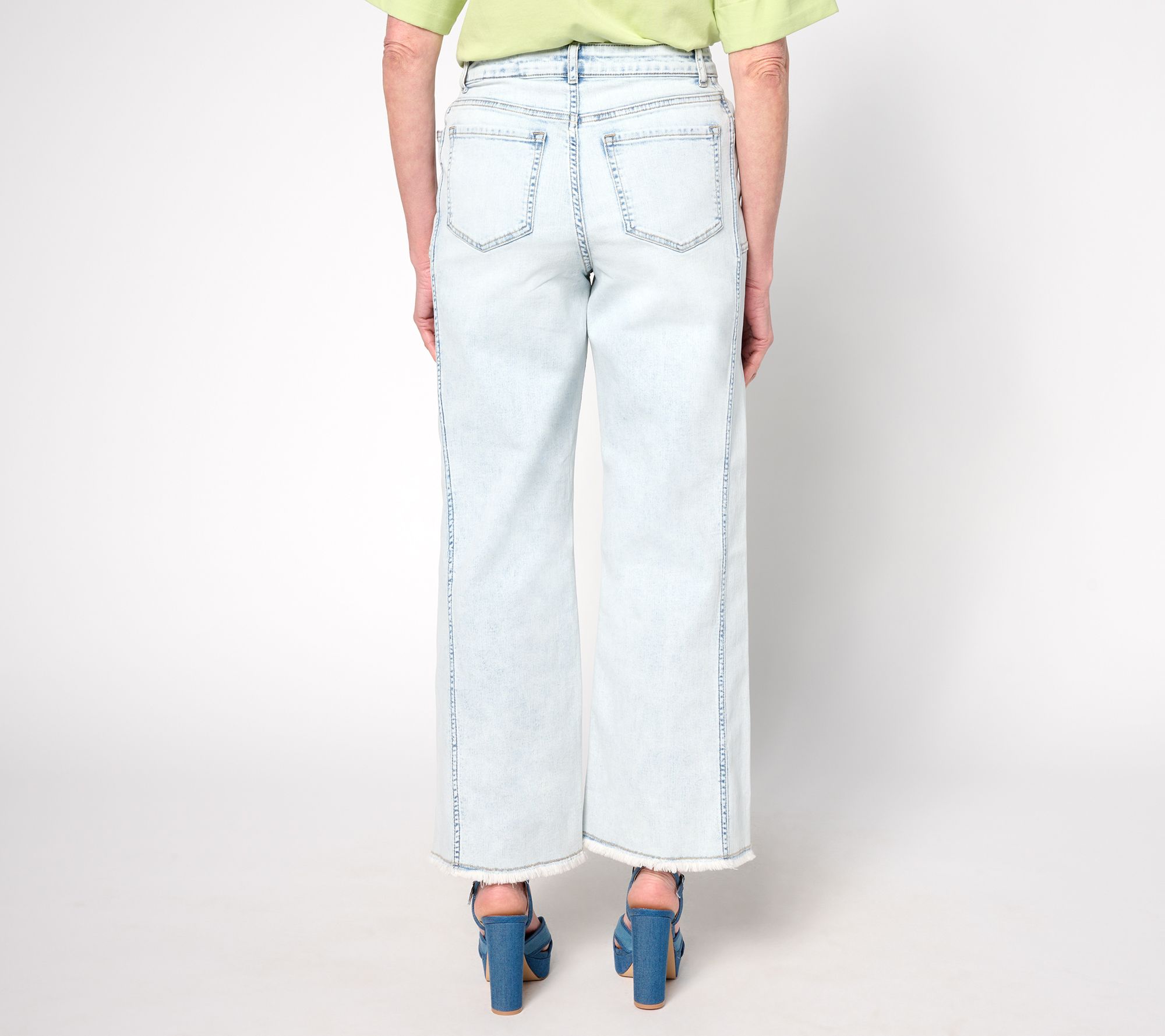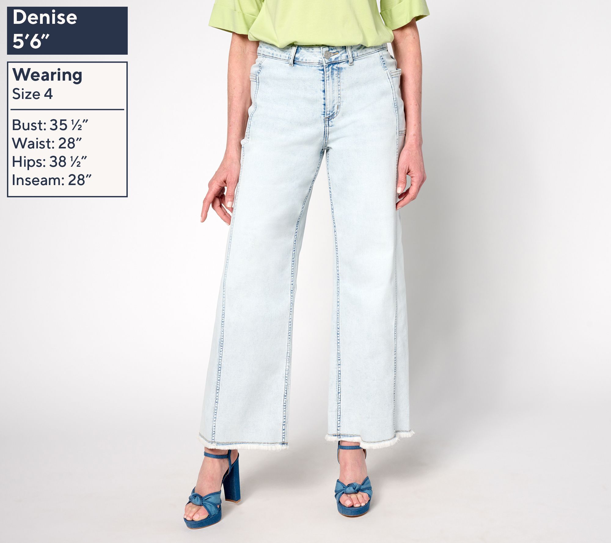 Casual days can still call for dressed-up denim. Cue the LOGO wide-leg jeans from Lori Goldstein. Seaming detail sets these picks apart from your regular rotation -- along with their retro-inspired raw edge that says you're right in step with chic trends. From LOGO by Lori Goldstein®.