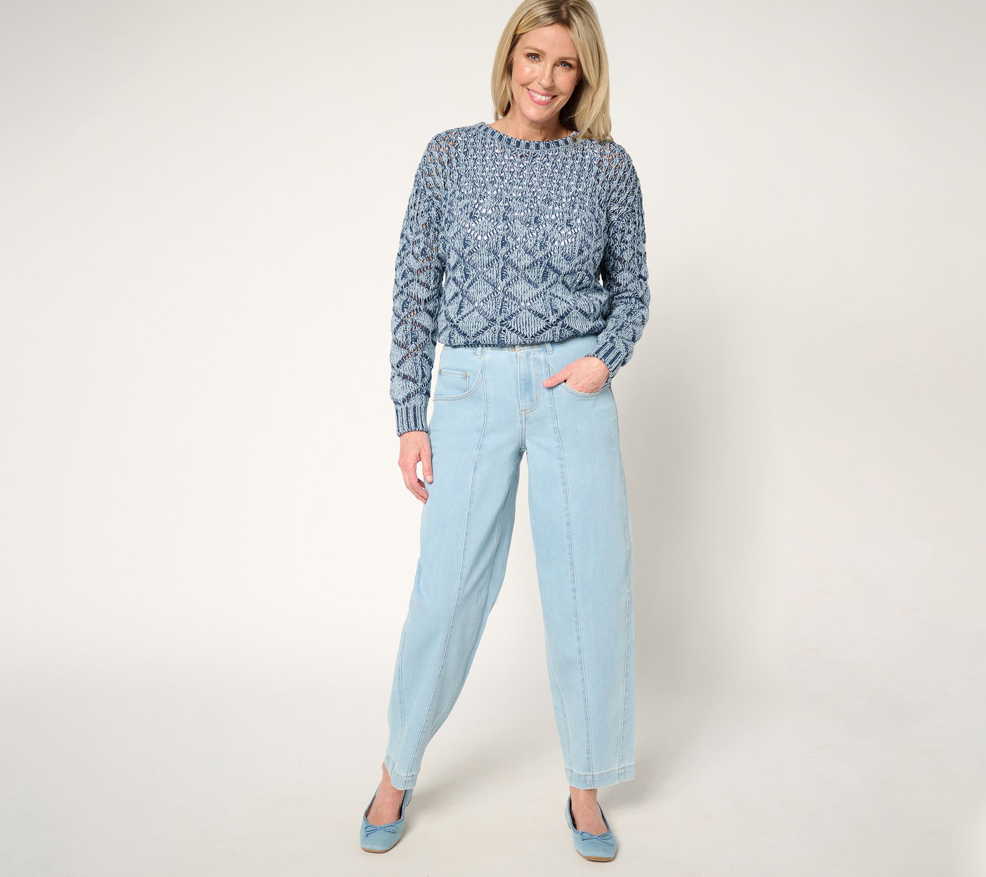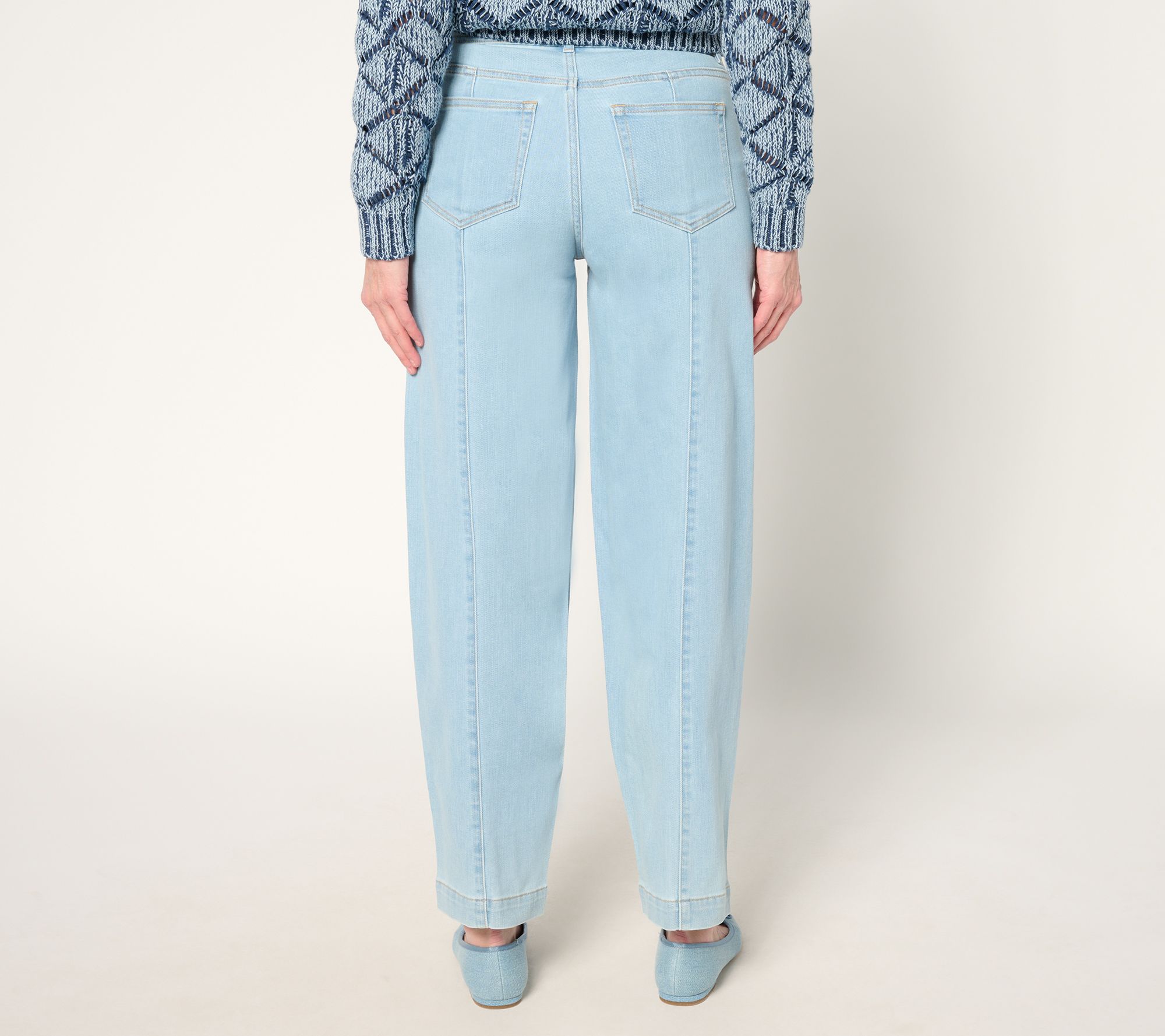 How refreshing! These jeans update your everyday denim with a barrel leg shape and trend-right ankle length. From LOGO by Lori Goldstein®.