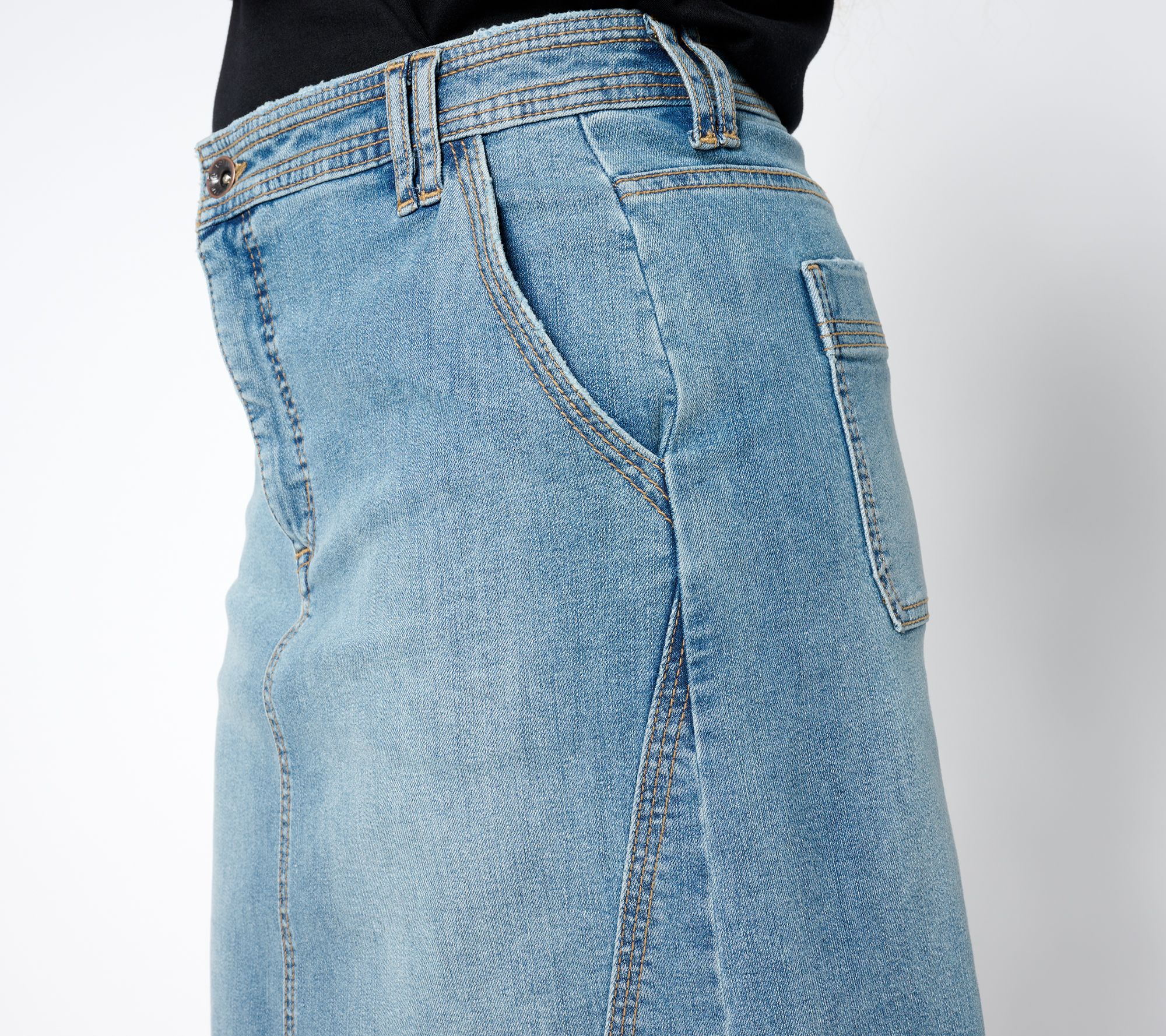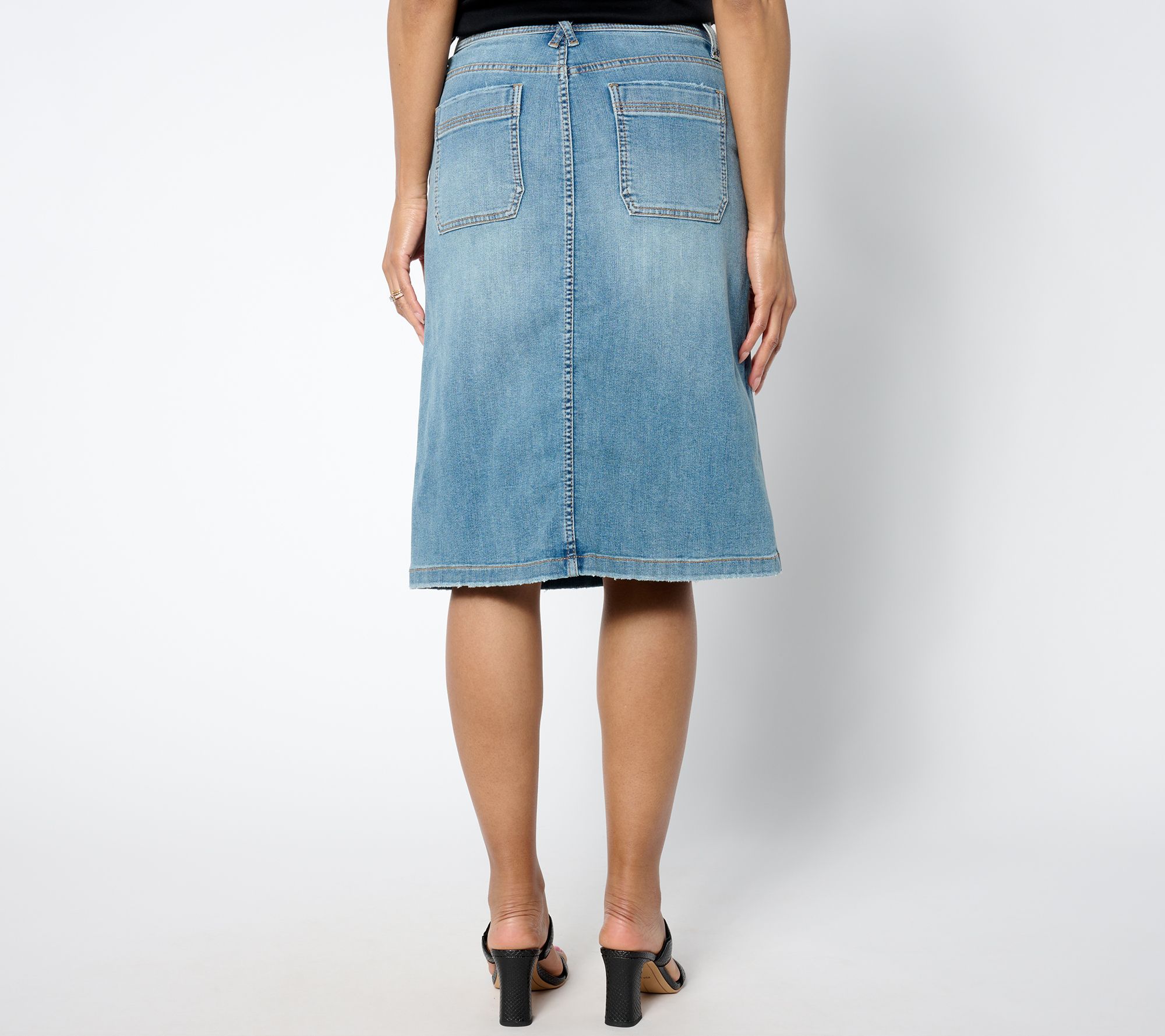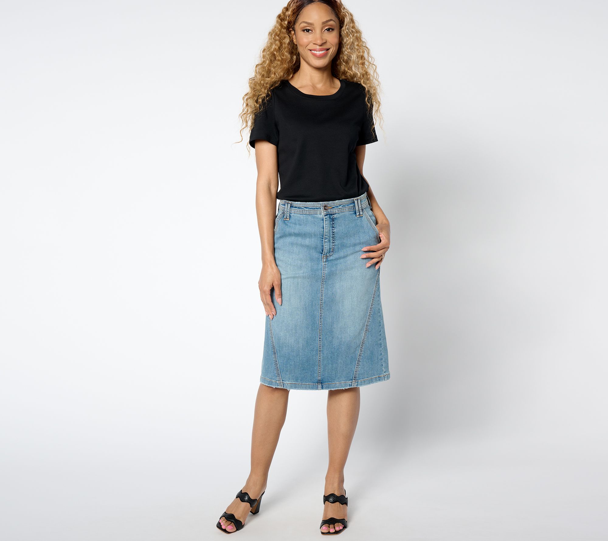 Providing a blend of classic charm and contemporary style, this knee-length denim skirt elevates your denim day options. Pair it with a tucked-in top and wedges for an office-ready look at the office or combine it with a casual tee and sneakers for a laid-back weekend ensemble. From LOGO by Lori Goldstein®.