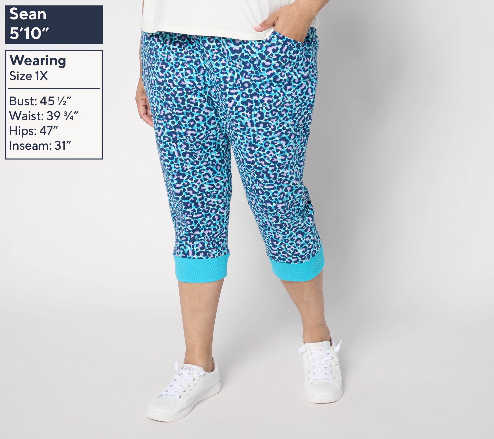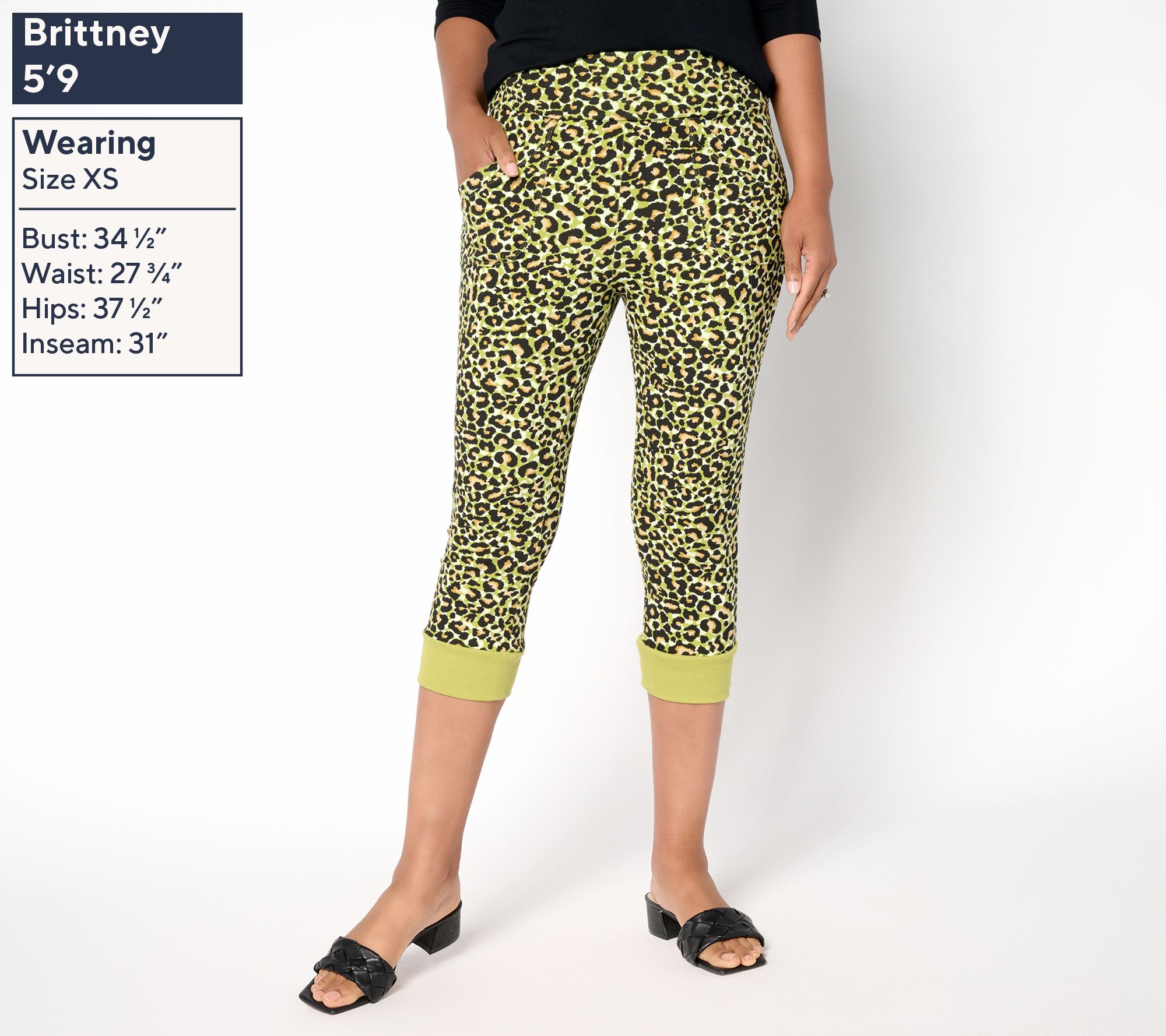 • Features: allover print, front pockets, capri length