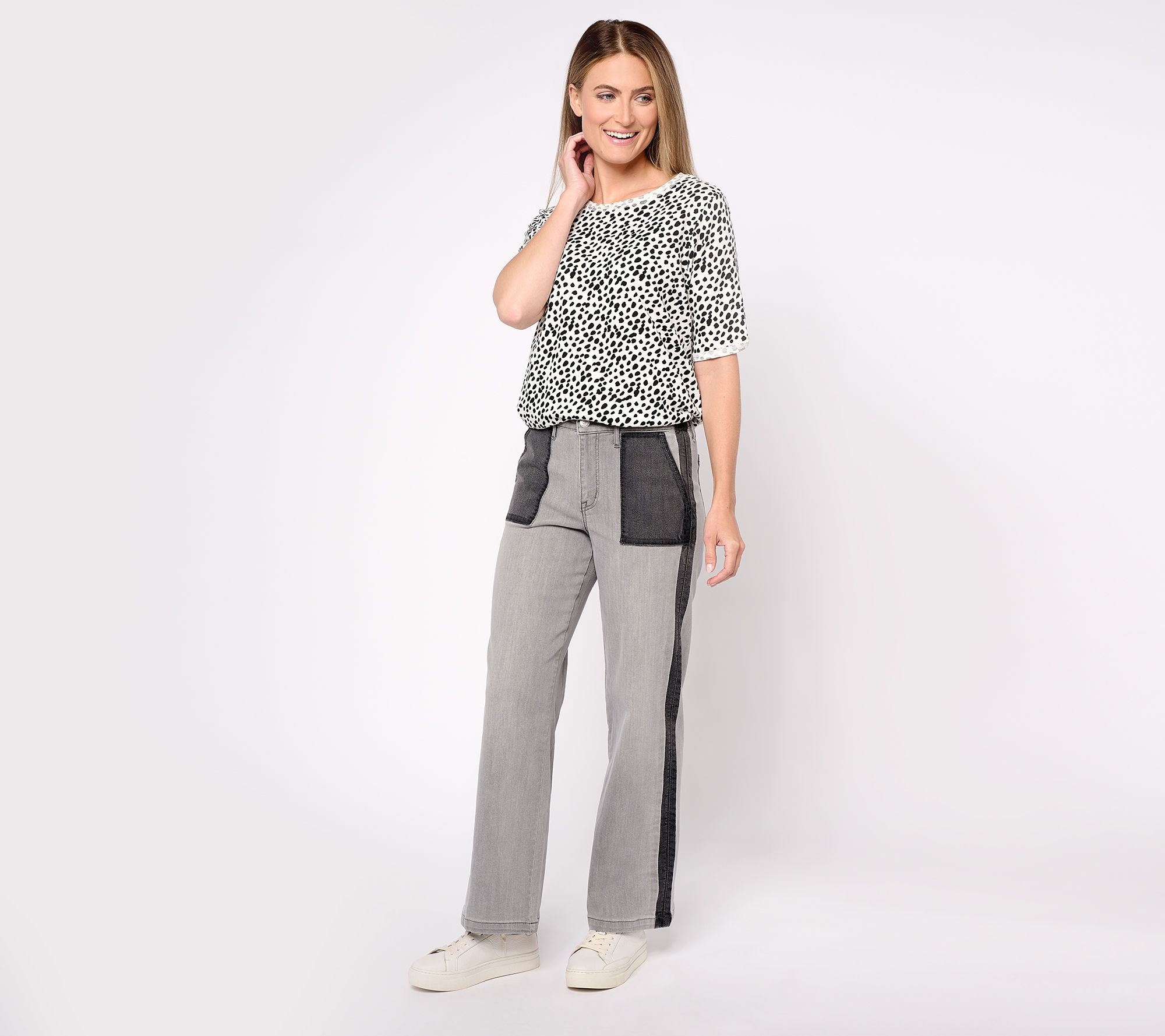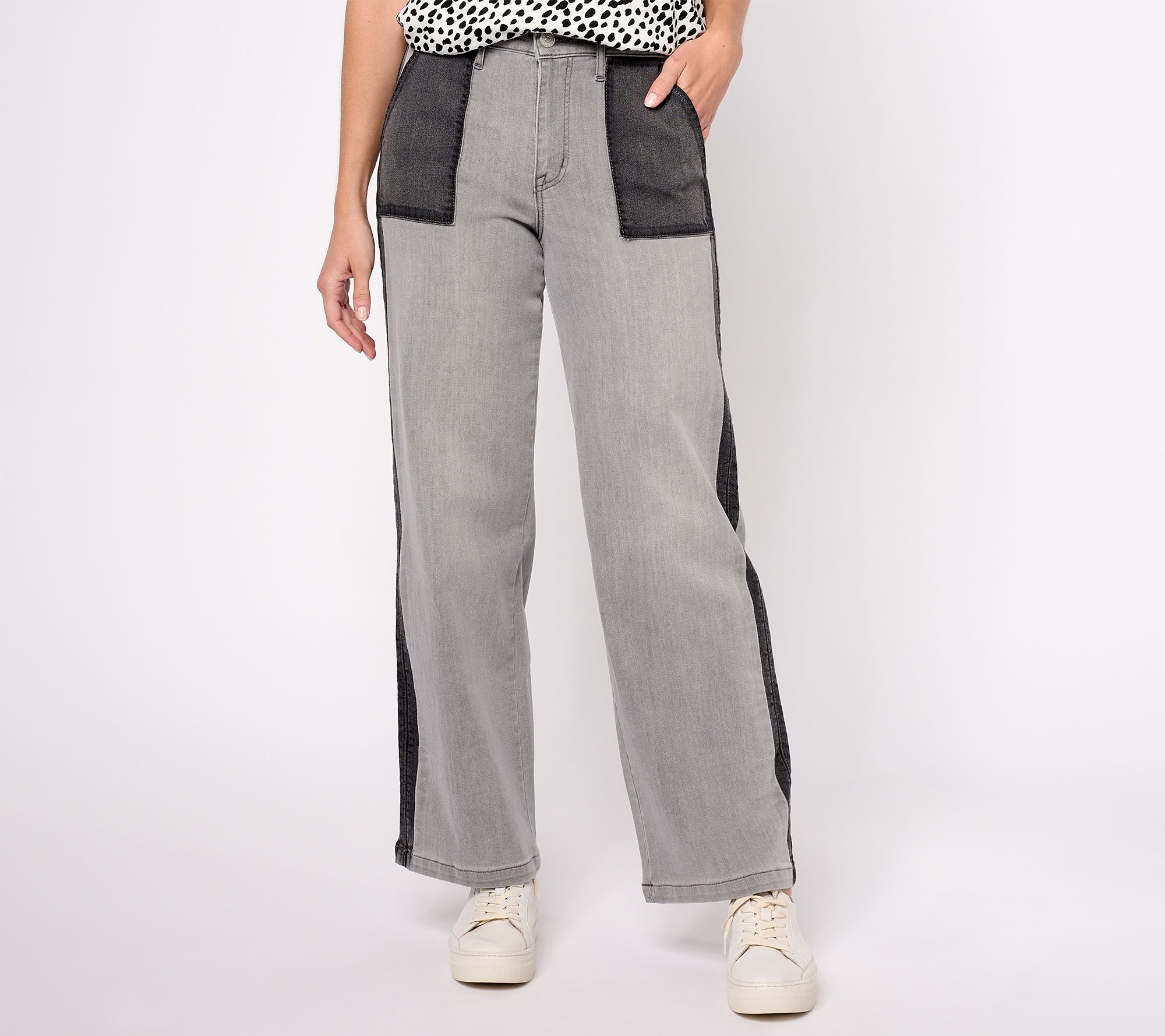 Offering a contemporary twist on a classic silhouette, these wide leg jeans flatter and flare. From LOGO by Lori Goldstein®.