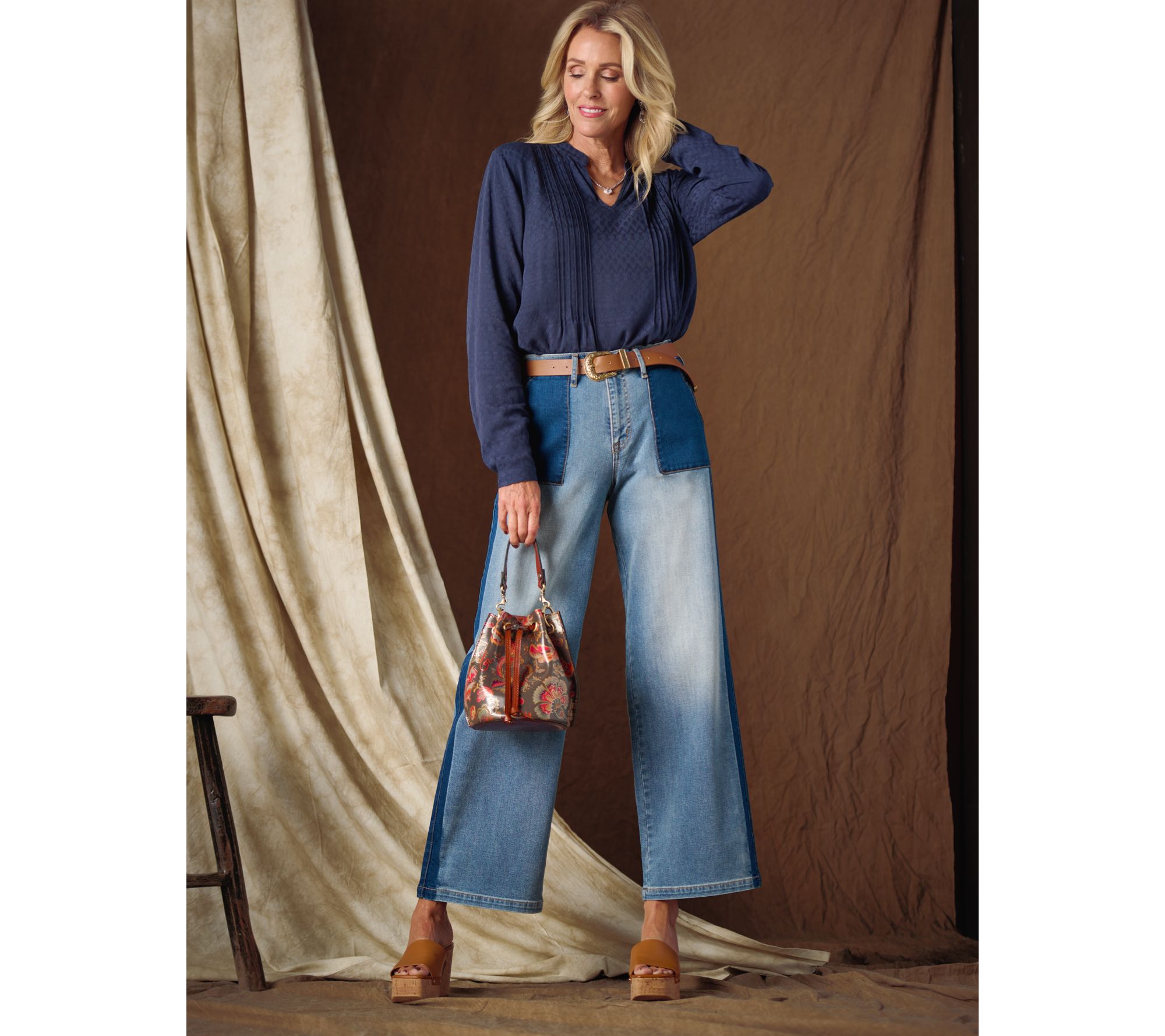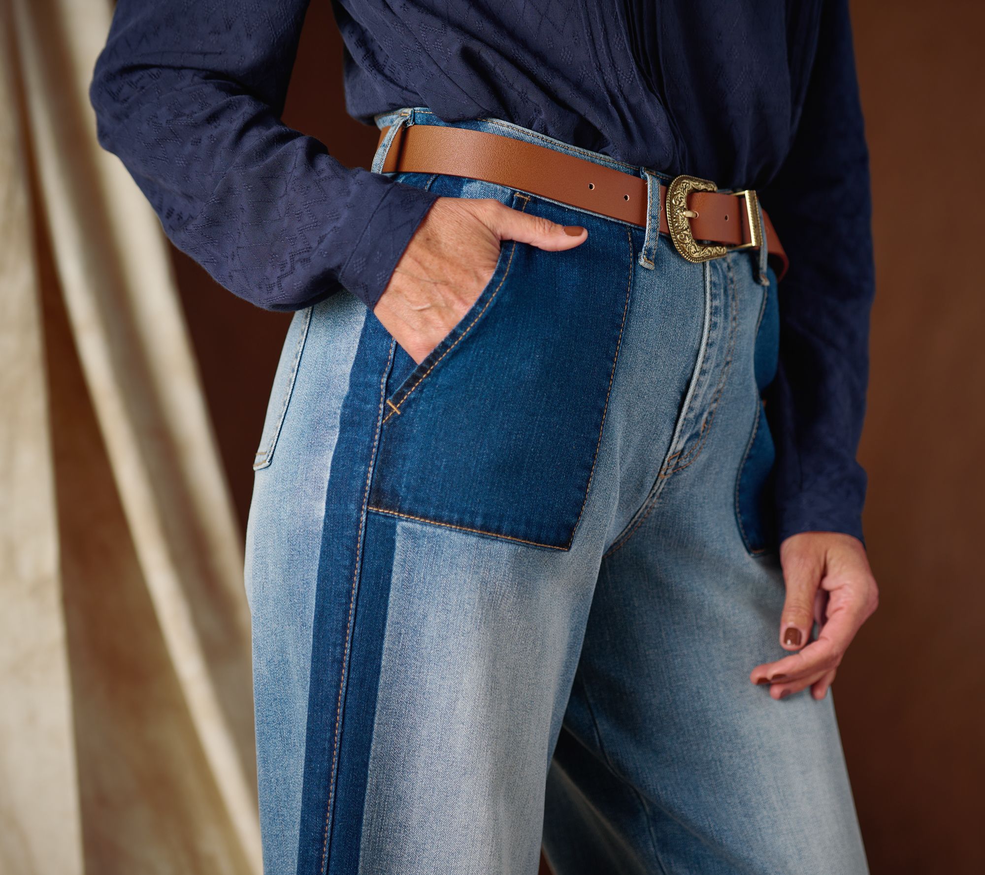 • Leg Shape: wide leg; widens fashionable from thigh to leg opening
