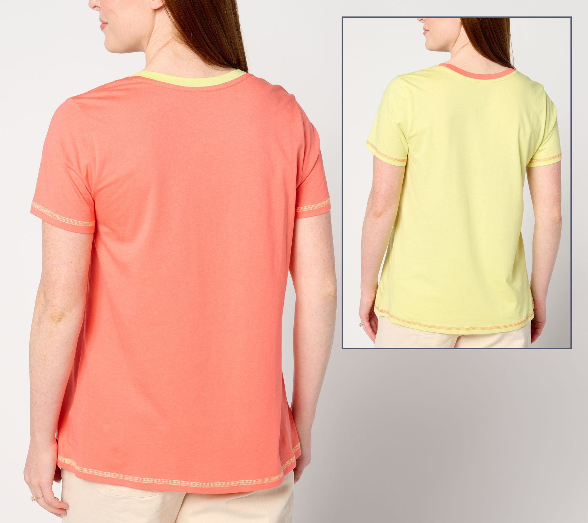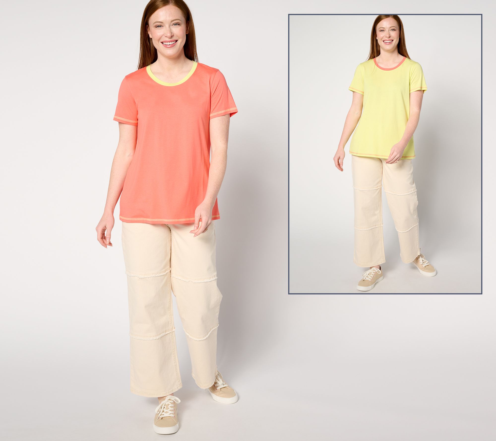Smoother-than-smooth cotton-modal + color blocking + two tops = just the joyful jolt your wardrobe is wanting. From LOGO by Lori Goldstein®.