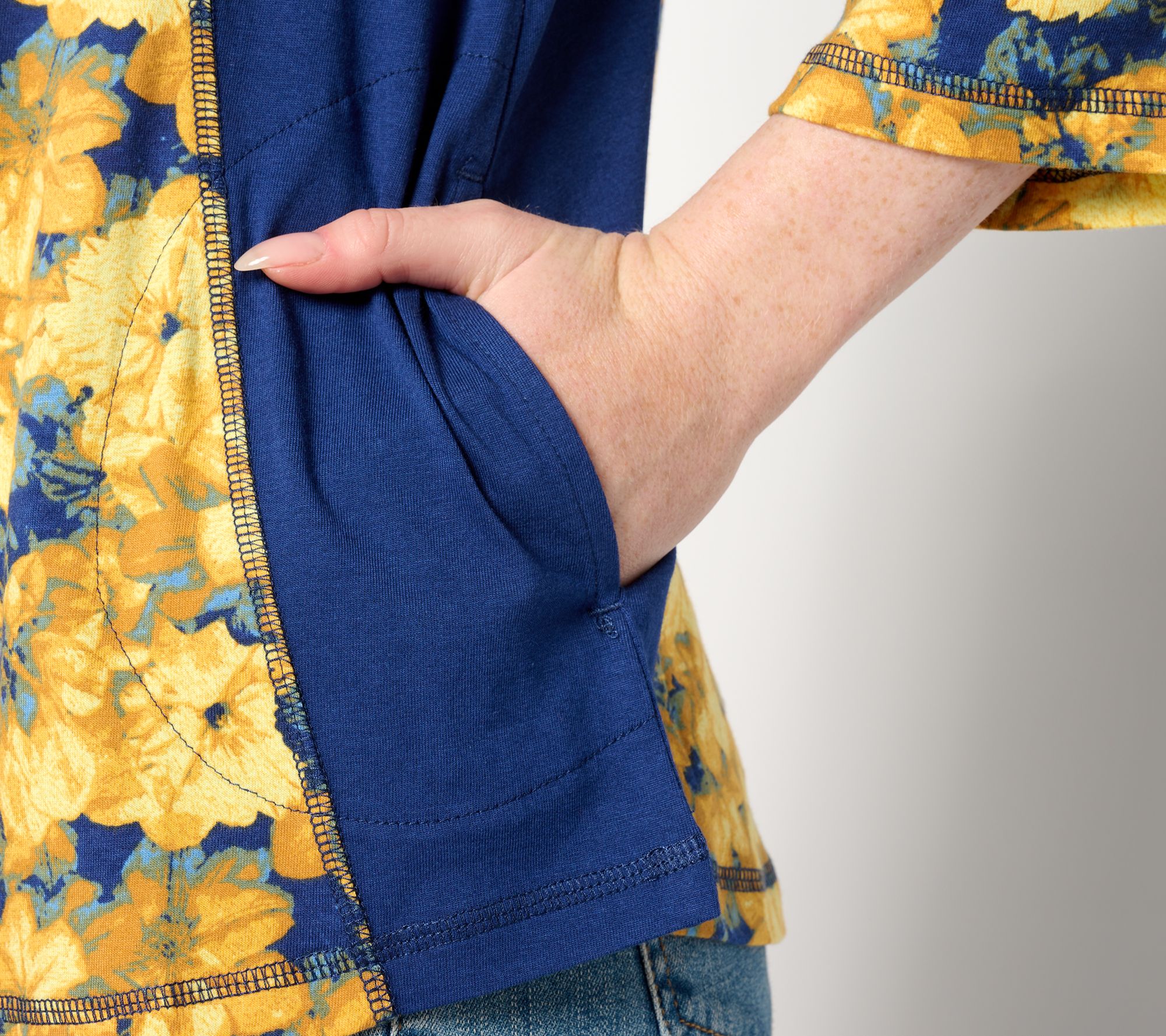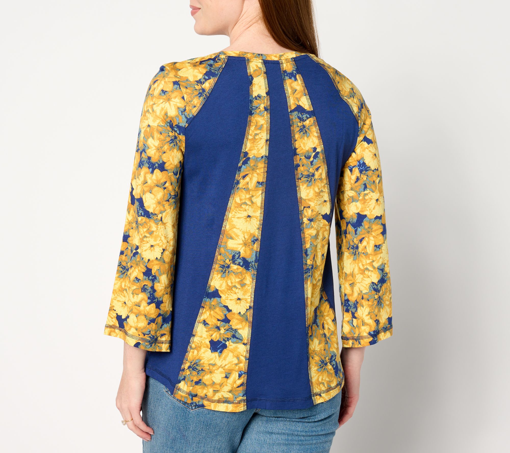 • Features: 3/4-length sleeves, scoop neckline, solid and print mix