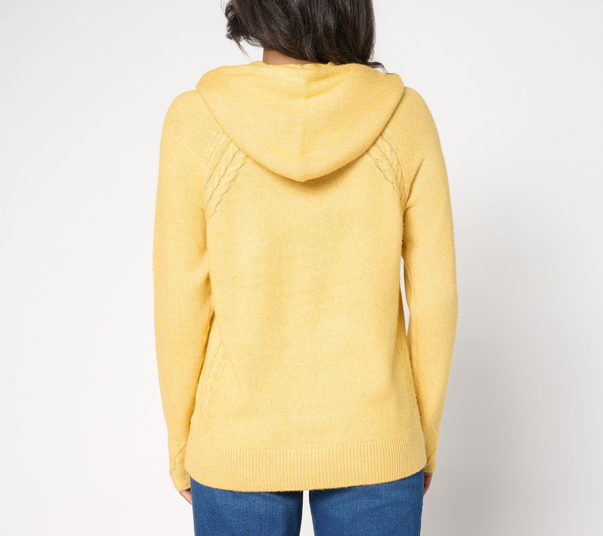 "As Is" LOGO by Lori Goldstein Raglan Sleeve Hooded Sweater with Cable Trim