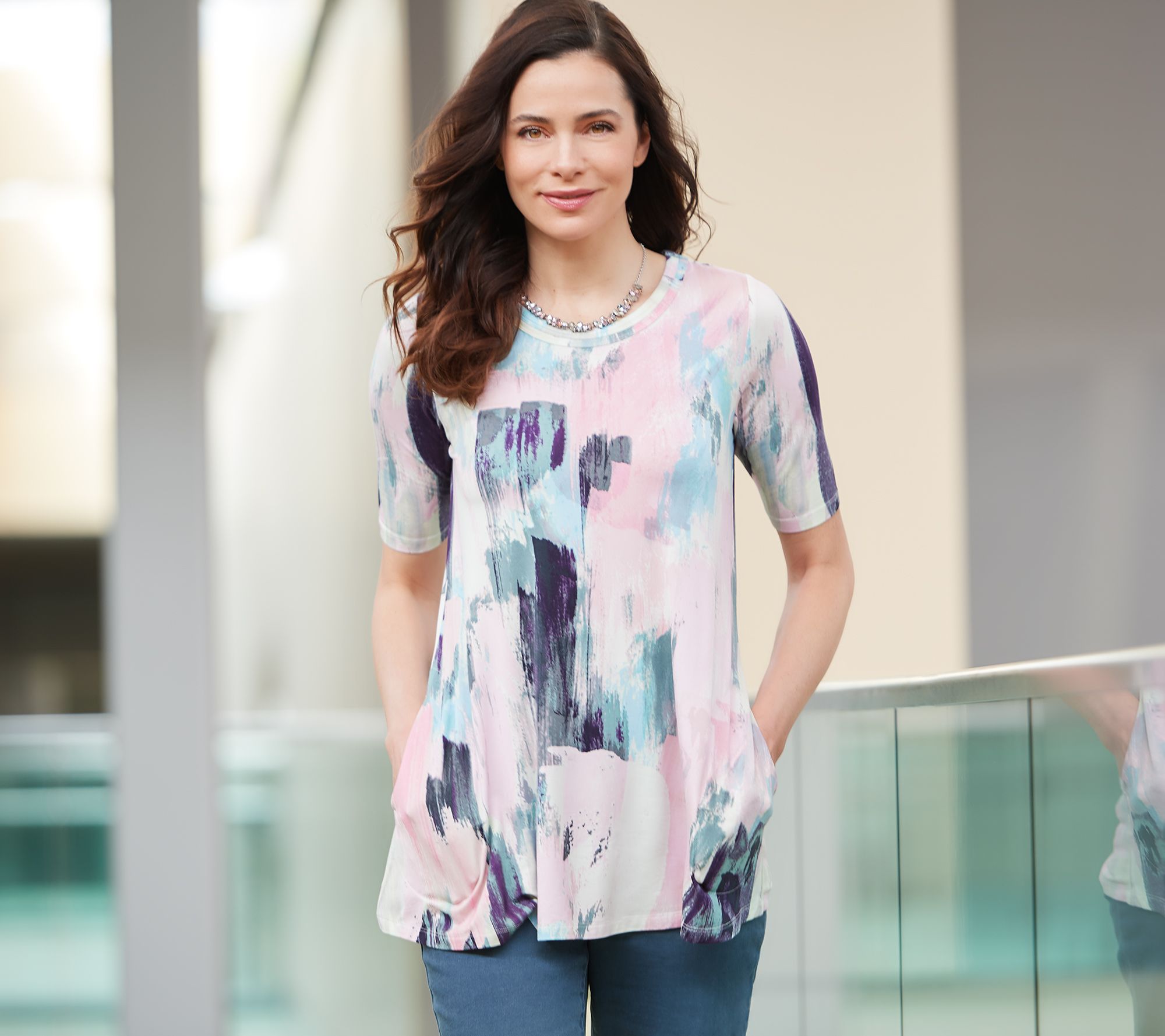 It's everything you want in a top, all finished with some swing for good measure. Arguably the best part? It's got pockets -- hello! This is the kind of warm-weather style you don't wanna miss. From LOGO by Lori Goldstein®.