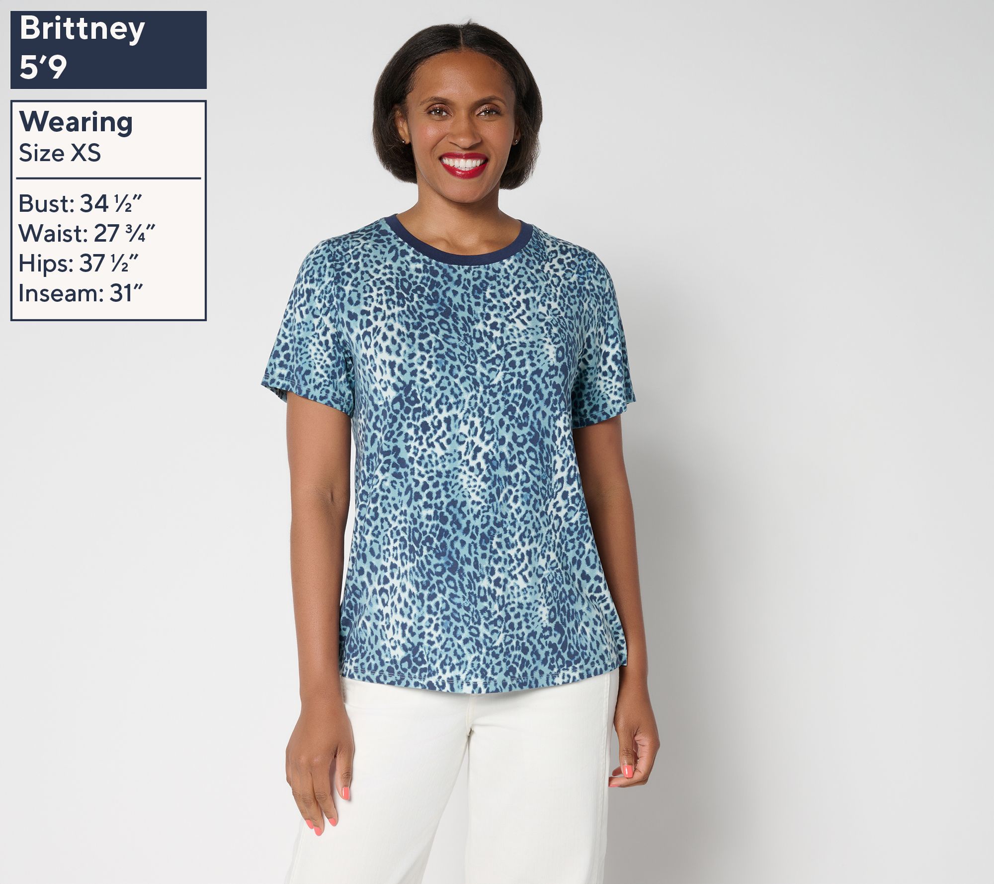 Let your playful side show with this leopard print tee, crafted in soft rayon-spandex jersey for a look that feels as good as it appears. The semi-fitted silhouette pairs effortlessly with jeans or joggers, making it easy to dress up or down as the occasion calls. From LOGO by Lori Goldstein®.