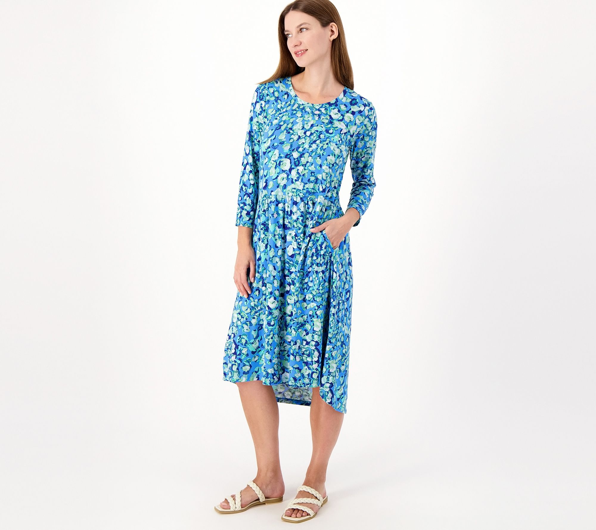 • Features: scoop neckline, 3/4-length sleeves, on-seam pockets, allover print