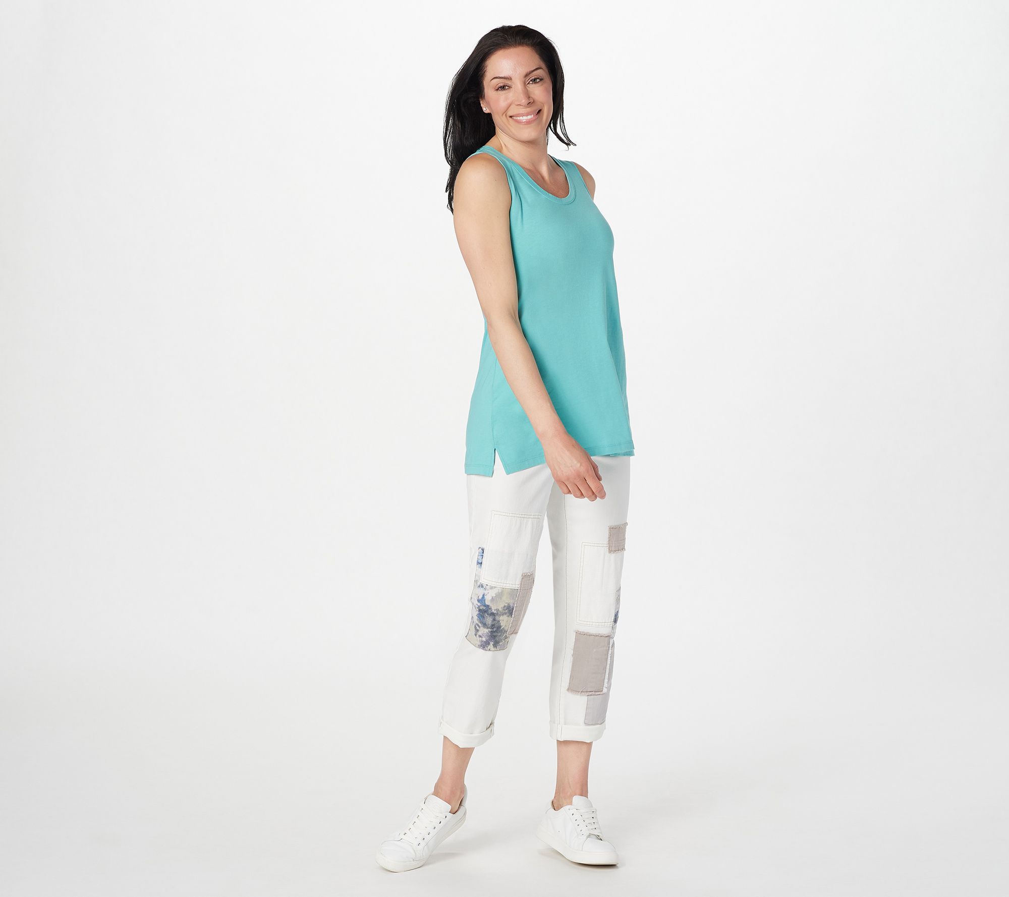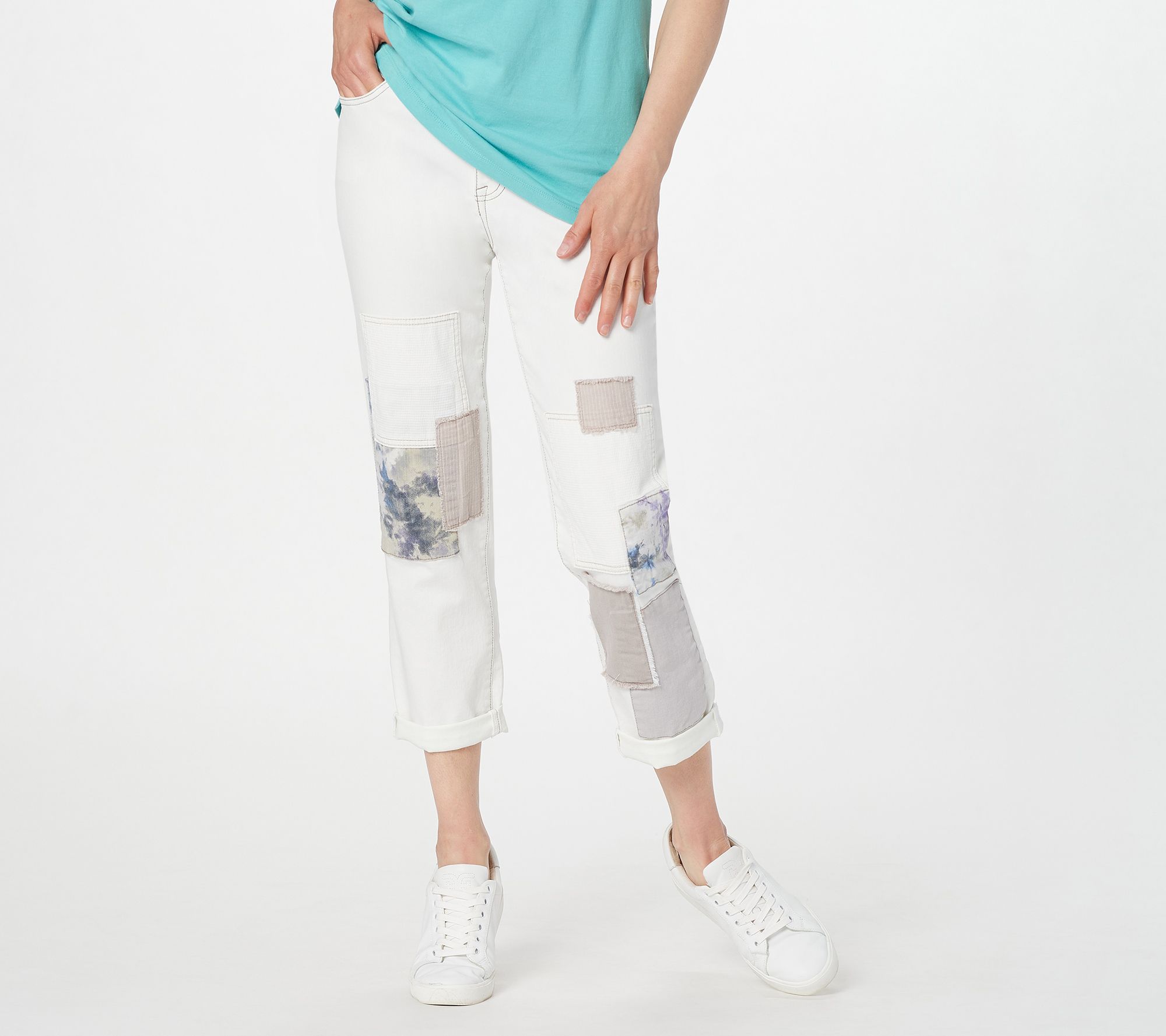 A touch of pretty patchwork and a laid-back boyfriend silhouette all make these jeans your new OOTD soulmate. From LOGO by Lori Goldstein®.