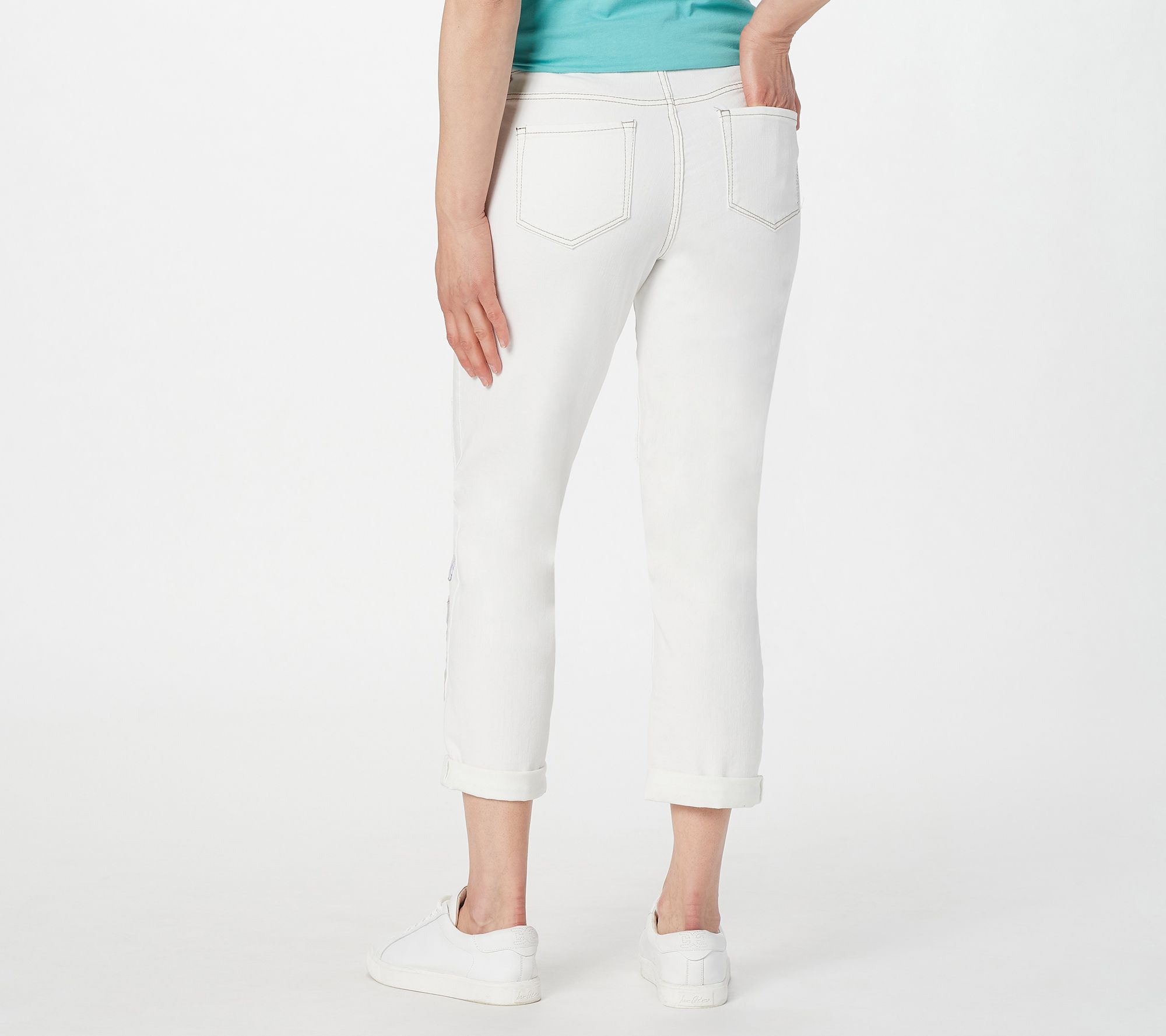 "As Is" LOGO by Lori Goldstein Reg. Alabaster Slim-Leg Boyfriend Jeans