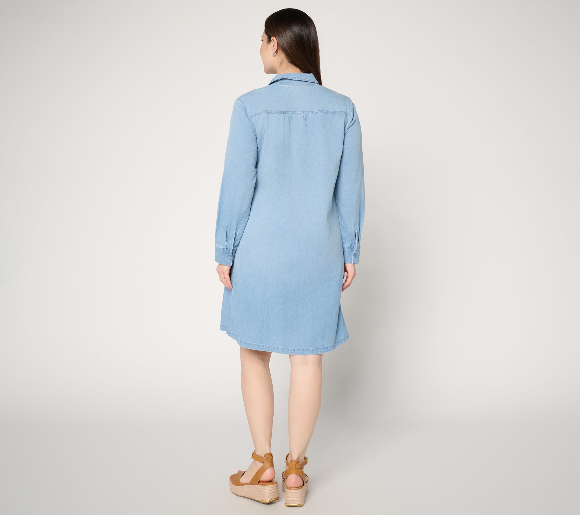 "As Is" LOGO by Lori Goldstein Reg Chambray Button Front Dress