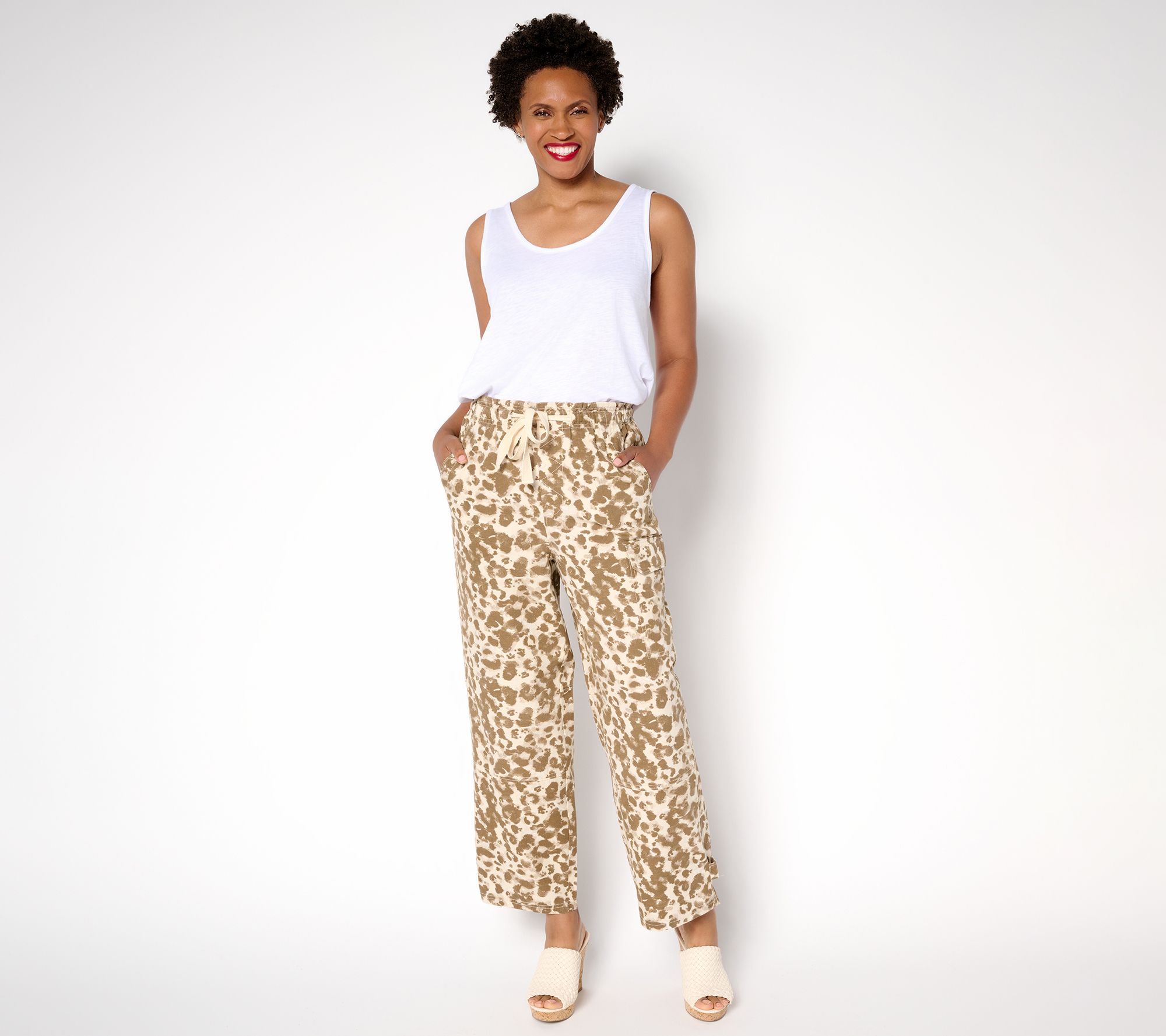 "As Is" LOGO by Lori Goldstein Reg Printed Cotton Utility Ankle Pants